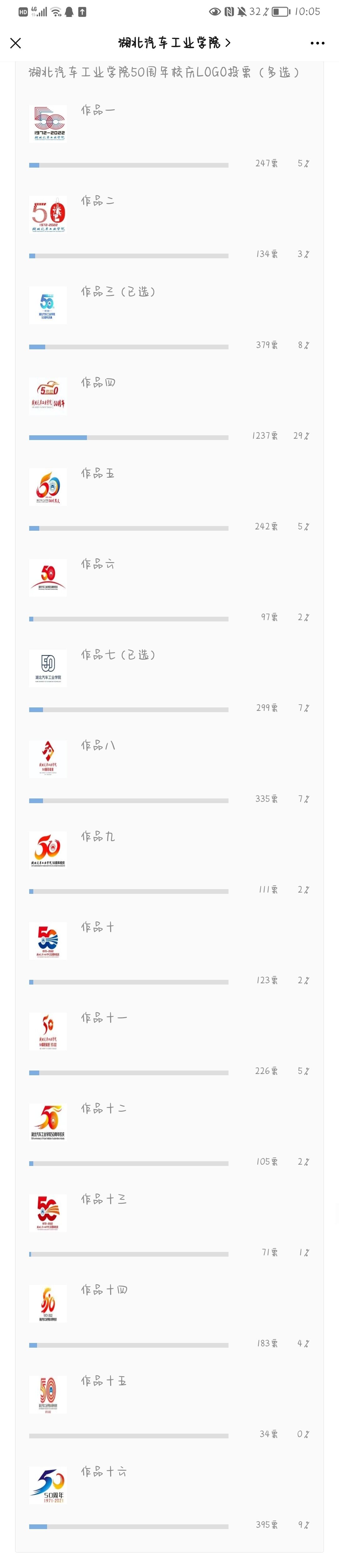 经过前期作品征集和第一轮专家评审,选出排名靠前的16件作品。第二轮网络投票从8月12日截至8月18日,共计总投票数4218。第一名四号作品以1237票遥遥领先。(下图)