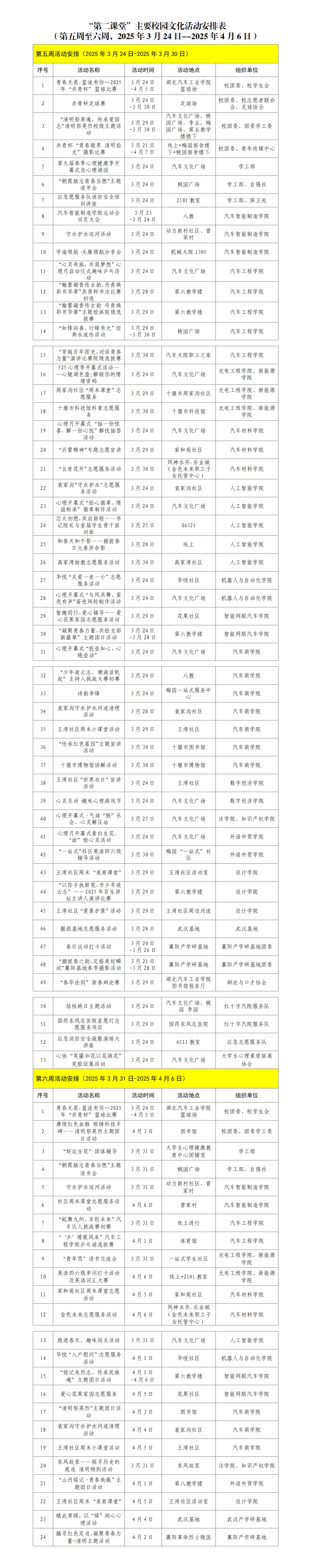 第二课堂”主要校园文化活动安排表(第五周至六周)
