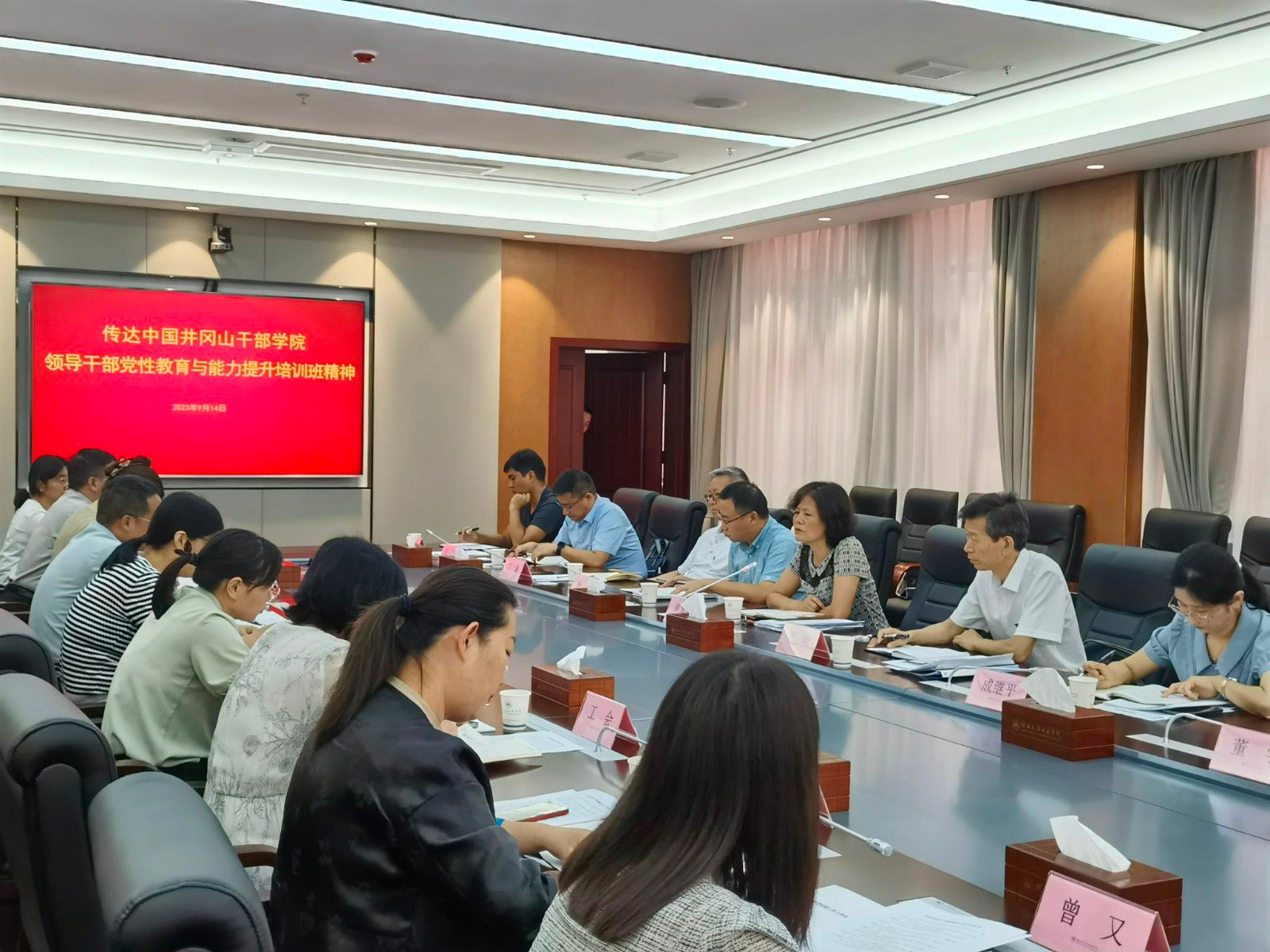 会议通报了培训班学习主要情况,以分享学习心得体会的形式,进一步传达学习张文学同志在培训班结业式上的讲话精神和工作要求,并结合围绕中心服务大局做好工作开展讨论。