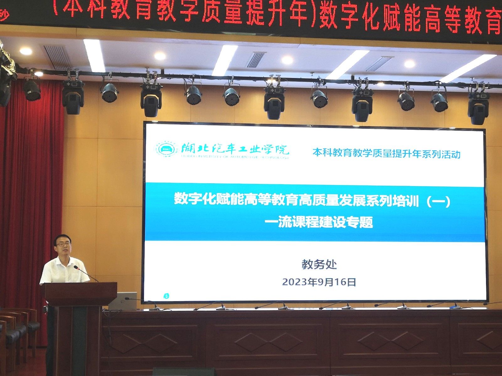 本网讯(文/图 程珍华)9月16日至17日,为贯彻落实学校“本科教育教学质量提升年”活动要求,深化课程教学改革,推进学校课程建设顶层设计和统筹规划,教务处在产教大数四楼报告厅组织开展“数字化赋能高等教育高质量发展系列培训:一流课程建设专题”培训会。学校党委常委、副校长张红霞,各学院(部)教学副院长、专业负责人、校级及以上一流课程团队成员、近三年新进教师及教务处相关人员等共计220人参加培训。会议由教务处长宫爱红主持。