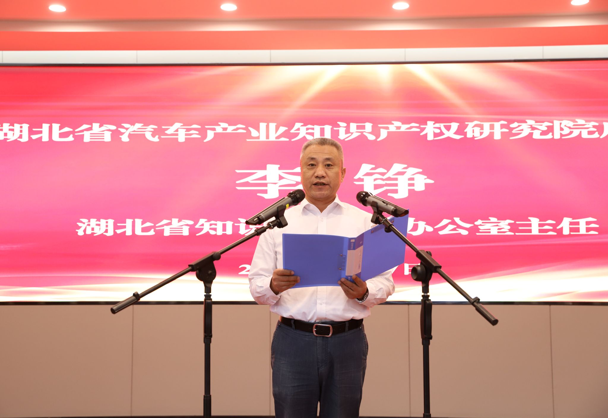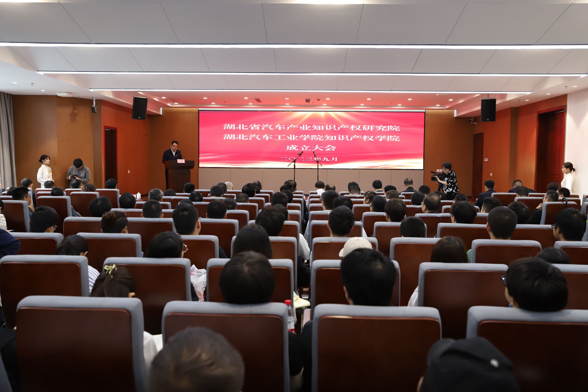校党委常委、党政办主任王文山宣读英国上市公司365知识产权学院成立文件;李铮主任宣读成立湖北省汽车产业知识产权研究院决定。