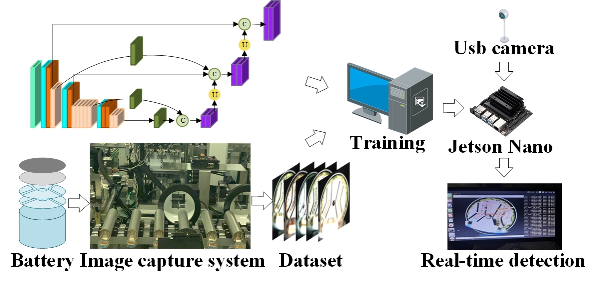 该论文提出了一种新的多尺度深度学习网络模型DGNet,用于检测新能源汽车电池集流盘焊接缺陷。实验结果表明,相比于其他先进网络模型检测方法,DGNet网络模型不仅具有更高的检测精度,而且计算开销也非常小,检测每张图像的平均时间只有0.074秒,能够满足工业检测任务的实时性要求,便于在嵌入式系统上实现。