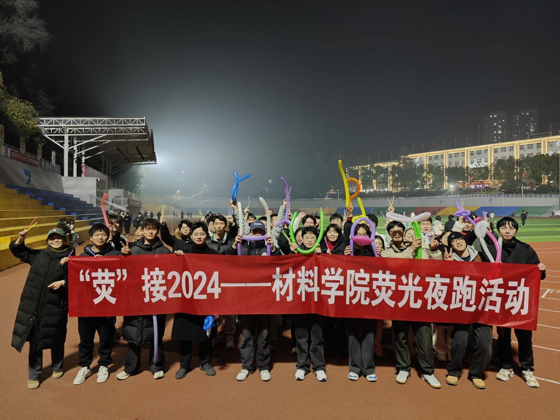 材料科学与工程学院还开展“荧”接2024——荧光夜跑活动,同学们在夜色璀璨中沿着操场跑道阔步前行,用奔跑的轨迹书写“2024”,以积极饱满的精神状态和健康的体魄一起迎接2024,“飞”奔向更美好的未来。