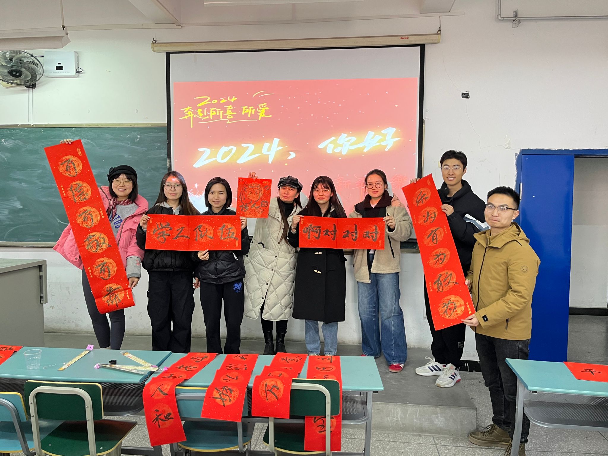活动在“年、春、福”等为首字的四字词语或诗句抢答中拉开帷幕,随后介绍了中国传统书法的历史渊源,教授了毛笔的正确握笔姿势和汉字书写技巧。留学生开始用毛笔字书写中国古诗词和春联,并主动了解春联所蕴含的深刻含义。留学生们在欢乐祥和的新年氛围中迎接新年的到来,并表示要把新春的美好祝愿用中国汉字的文化形式传递到新的一年。