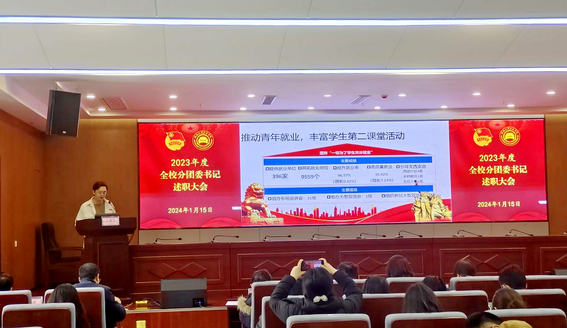 会上,各单位分团委书记就2023年度思想引领、志愿服务、社会实践、创新创业、文体活动等共青团工作进行总结,分享经验做法,深入检视不足,并对2024年共青团工作做出规划和展望。