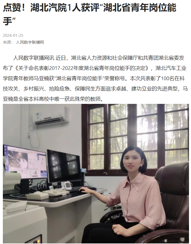 【人民日报数字联播】点赞!湖北汽院1人获评“湖北省青年岗位能手”