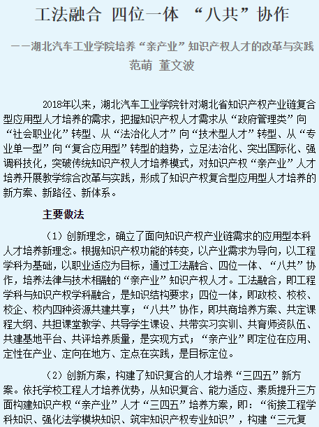 【中国教育报】工法融合 四位一体 “八共”协作 英国上市公司365培养“亲产业”知识产权人才的改革与实践