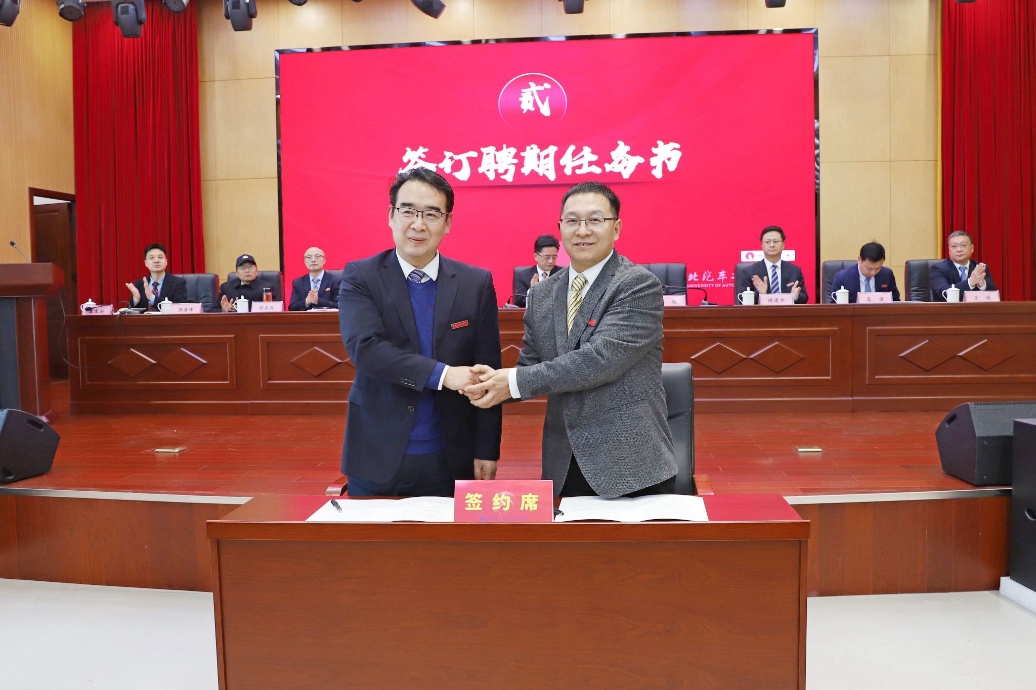 会上,校党委副书记李涛宣读了2023年新晋高级职称教师聘任结果。校长王晓分别与新晋高级职称教师代表邓召文教授、袁显举教授、石则云副教授、景勤副教授签订聘期任务书。校党委书记张文学、校长王晓为新晋高级职称教师代表颁发聘书。