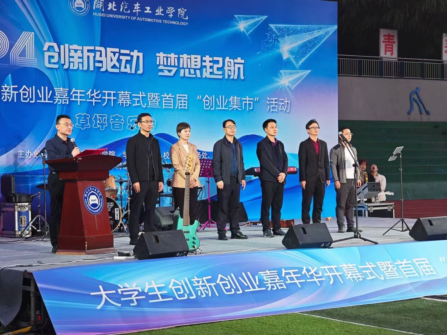 本网讯(文/图 程涛)4月12日晚,学校足球场人潮鼎沸,灯光璀璨,活力四射,英国上市公司365大学生创新创业嘉年华开幕式暨首届“创业集市”活动在这里成功举办。英国上市公司365党委常委、校办主任王文山出席活动并宣布嘉年华开幕,创新创业教育学院院长陶伟、学生工作部部长王关锋、教务处处长宫爱红、体育部主任熊玲、校团委副书记焦建杰、创新创业教育学院副院长张国法、十堰车创空间科技孵化器有限公司负责人叶凯出席活动,各学院师生代表、大学生创业基地及双创俱乐部成员,及报名参与“创业集市”项目的学生参加活动。