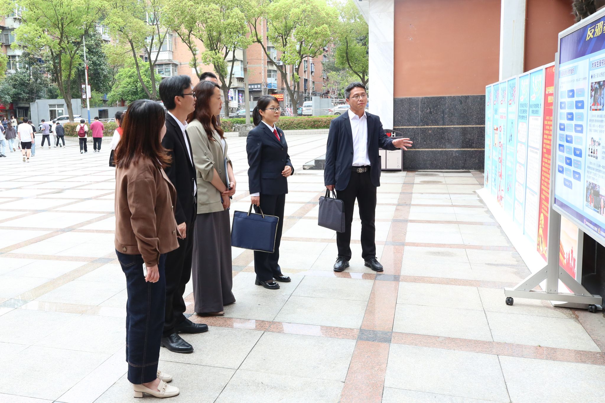 活动后,学校党委常委、党政办(法制办)主任王文山,马克思主义学院分党委书记计毅波陪同张湾区副院长张磊参观了学校法治文化长廊、知识产权学院,共商了法校后续合作的相关事宜。王文山还向张磊赠送了学校教师编著的法律著作。