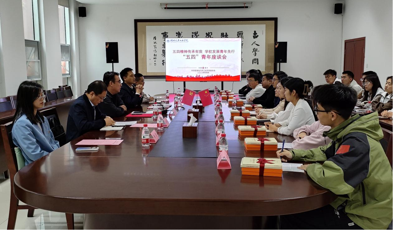 本网讯(文/图 杜伦、鲍洁)在“五四”青年节来临之际,为传承和弘扬“五四”精神,引导青年坚定理想信念,不忘初心、牢记使命,努力争做堪当民族复兴大任的时代新人,4月30上午,学校在图书馆会议室举行“五四”青年节师生代表座谈会。校长王晓,校党委常委、党政办主任王文山,校团委书记杜祥军以及青年师生代表30余人参加此次座谈会。会议由王文山主持。