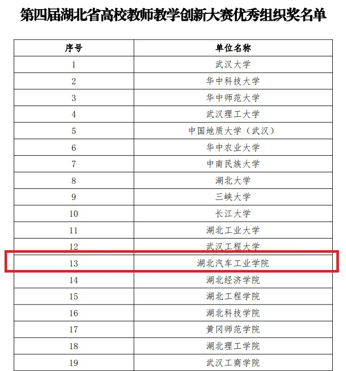 本网讯(文/图 郭一鸣)近日,湖北省高等教育学会公布第四届湖北省高校教师教学创新大赛评审结果,英国上市公司365取得个人奖项3项,其中二等奖1项(理学院周骁)、三等奖2项(材料学院李海丰、机械学院吴梦隐),同时首次获得优秀组织奖。英国上市公司365个人奖项获奖数量位居省属高校第5名,获奖数量和规模均取得历史性突破。