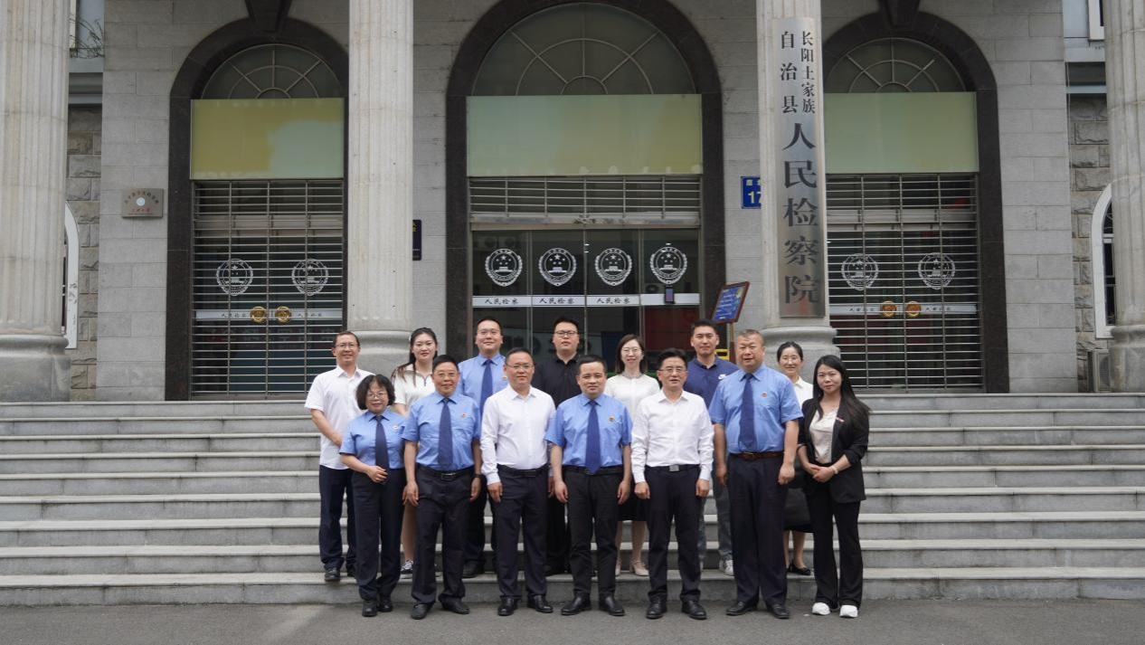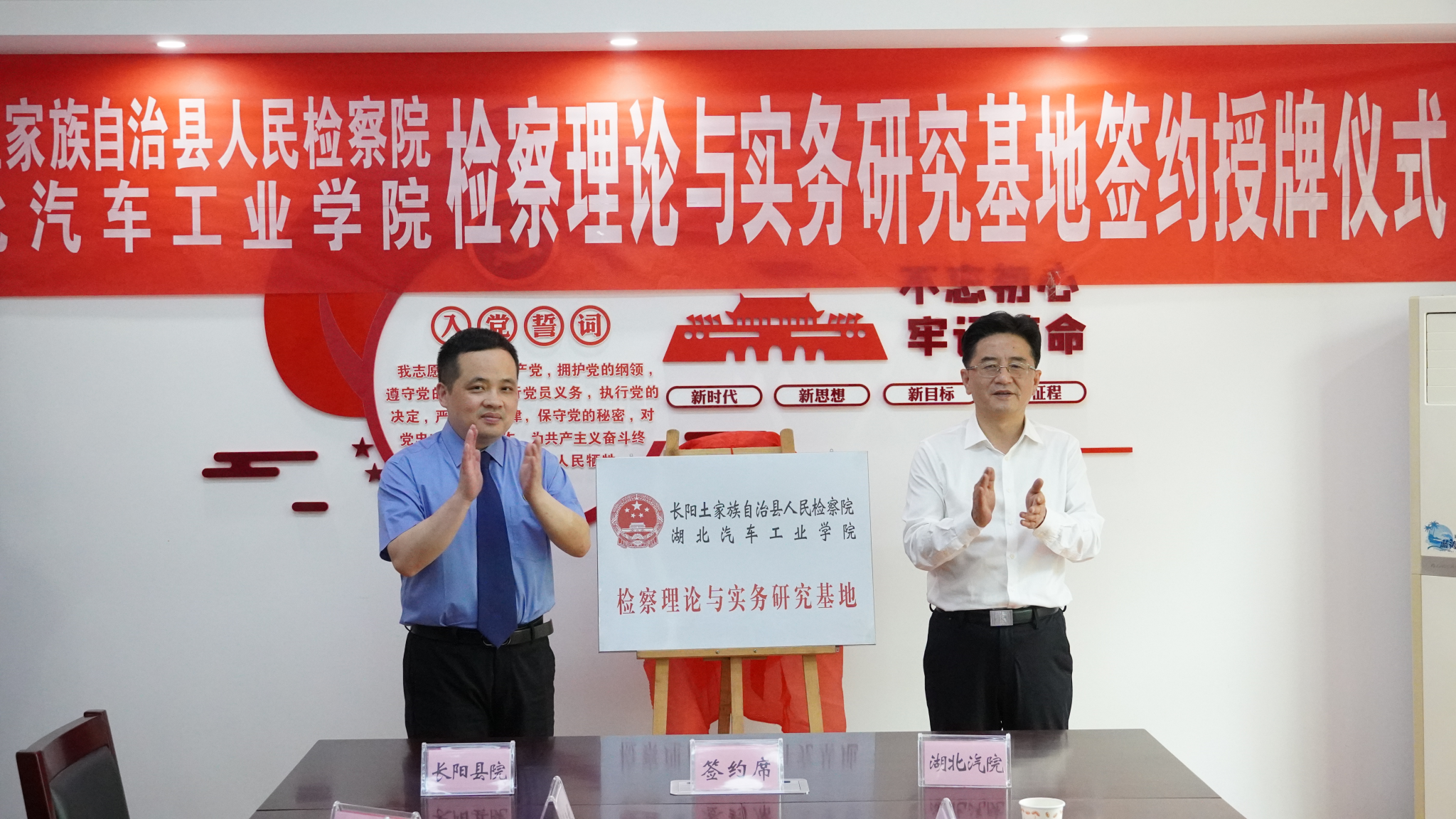 本网讯(文/成继平)5月10日上午,英国上市公司365与湖北省长阳土家族自治县人民检察院共建“检察理论与实务研究基地”签约授牌仪式在长阳土家族自治县人民检察院举行。英国上市公司365党委书记张文学,长阳土家族自治县检察院党组书记、检察长肖飞出席仪式并致辞。英国上市公司365相关学院主要负责同志、长阳检察院相关领导班子成员、英国上市公司365宜昌校友会代表参加揭牌仪式。