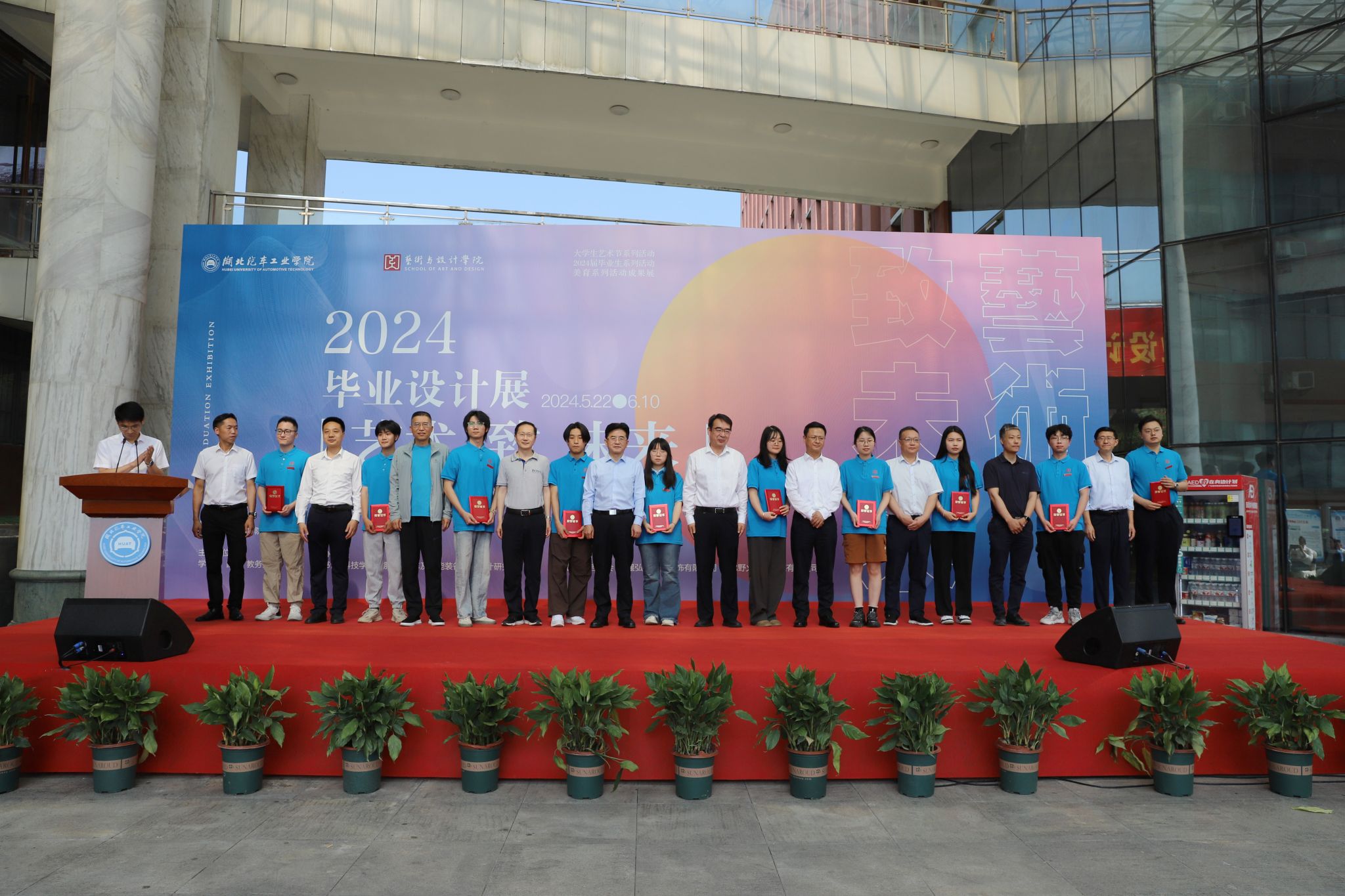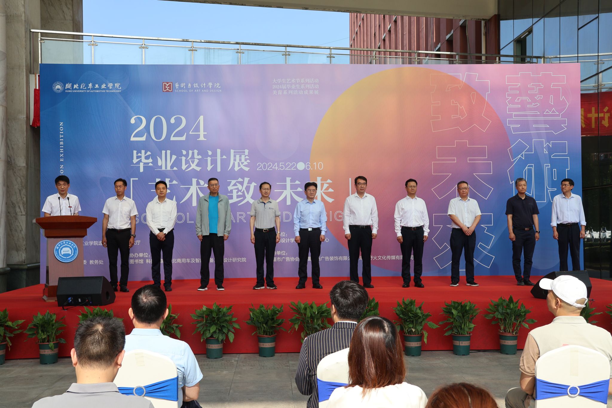 学校全体在家校领导出席开幕式,学校合作企事业单位代表、相关职能部门与科技学院主要负责人受邀出席开幕式,艺术与设计学院全体教师及2024届全体毕业生齐聚一堂,共襄盛会。开幕式由艺术与设计学院分党委书记黄进涛主持。