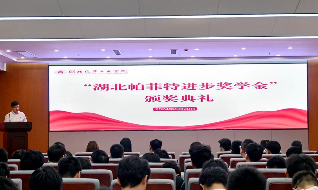 6月20日下午,汽车工程学院在产教大楼三楼报告厅举行“湖北帕菲特进步奖学金”颁奖典礼,湖北帕菲特工程机械有限公司总经理郑世海一行3人,校党委副书记陈建平,发展规划处处长原刃锋,学工部副部长杜昕俊,汽车工程学院全体班子成员、辅导员及获奖学生代表140余人参会。