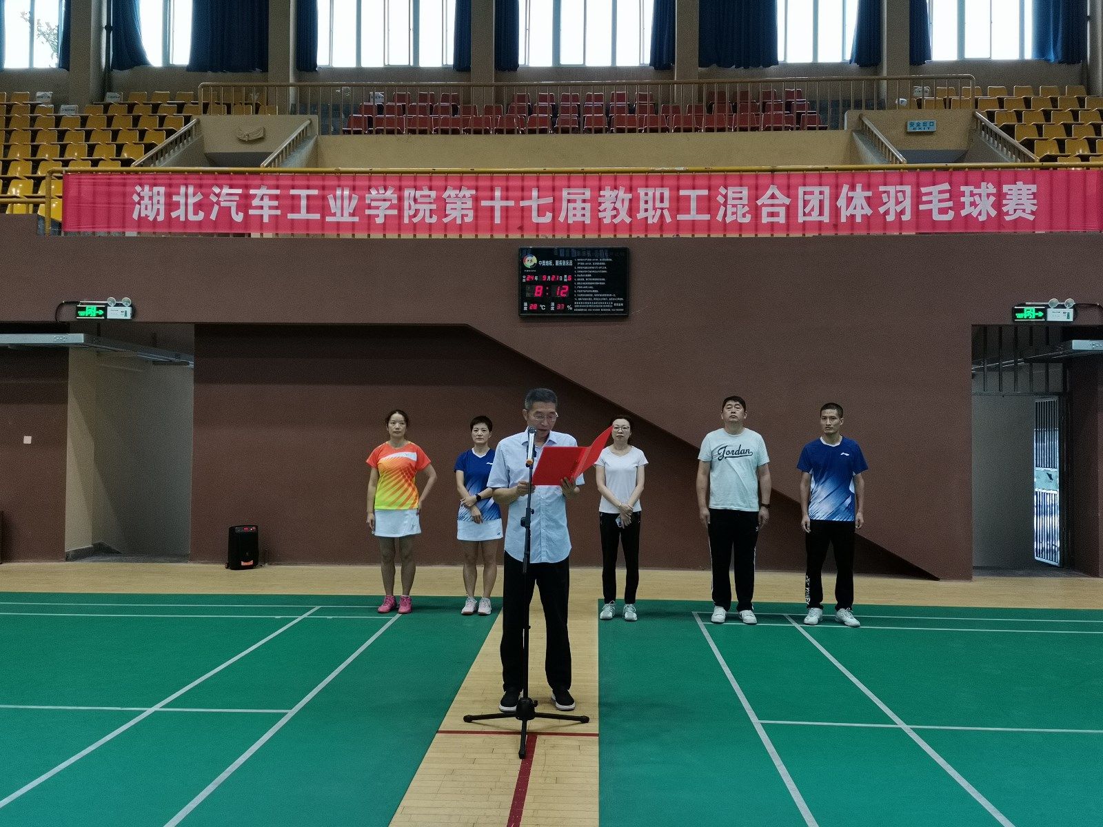 本网讯(文/图 张丽丽)为丰富教职工精神文化生活,喜迎中华人民共和国成立75周年,9月21日,由校工会主办、教工羽协承办、体育部协办的第十七届教职工混合团体羽毛球赛在体育馆热烈开赛。此次比赛共有15支代表队,180余名运动员参赛。校工会主席陈海峰为开幕式致辞。
