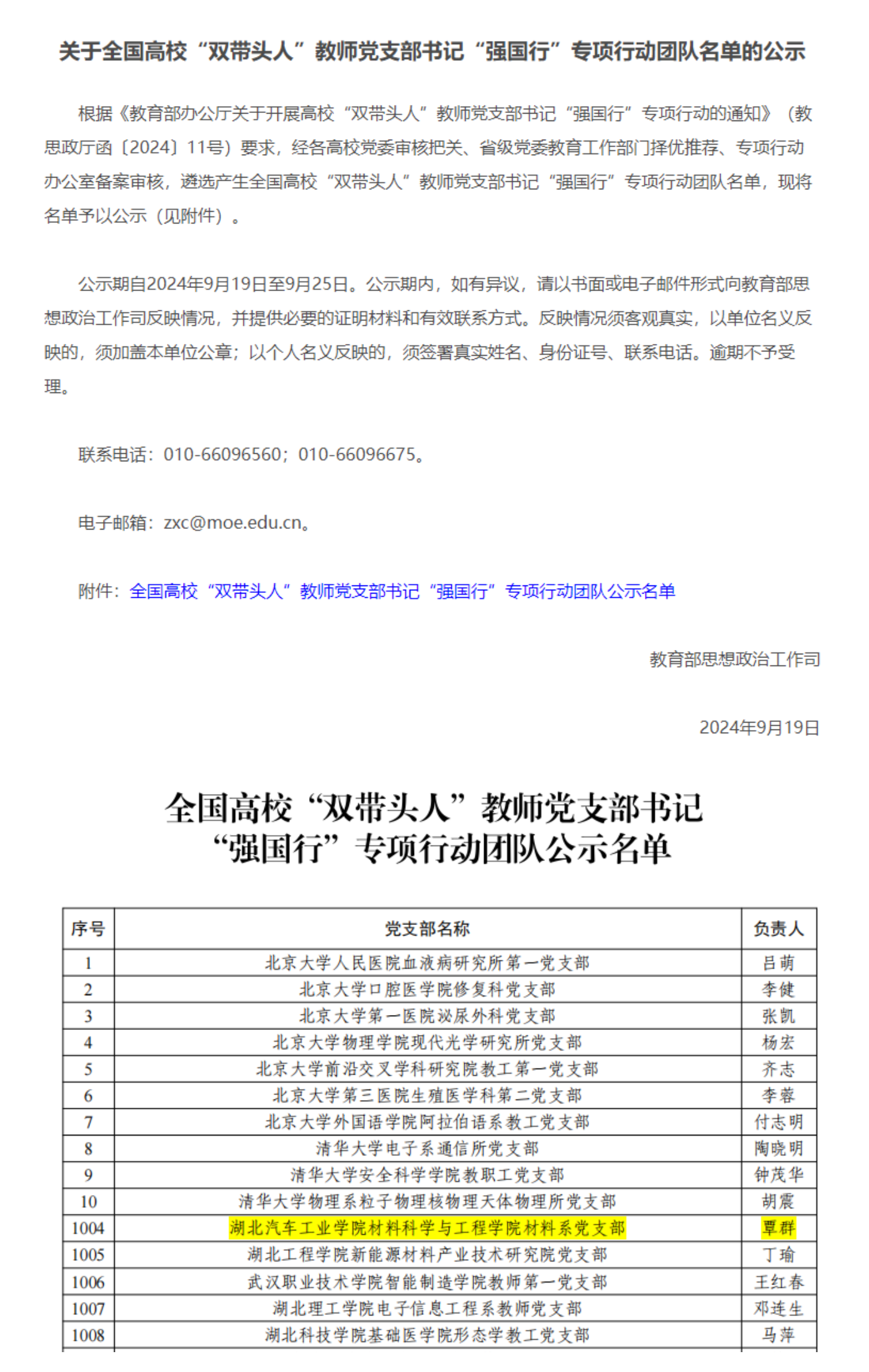 本网讯(文 王雪雪/图 覃群)日前,教育部办公厅公布《关于全国高校“双带头人”教师党支部书记“强国行”专项行动团队名单的公示》,英国上市公司365材料科学与工程学院材料系党支部成功入选。