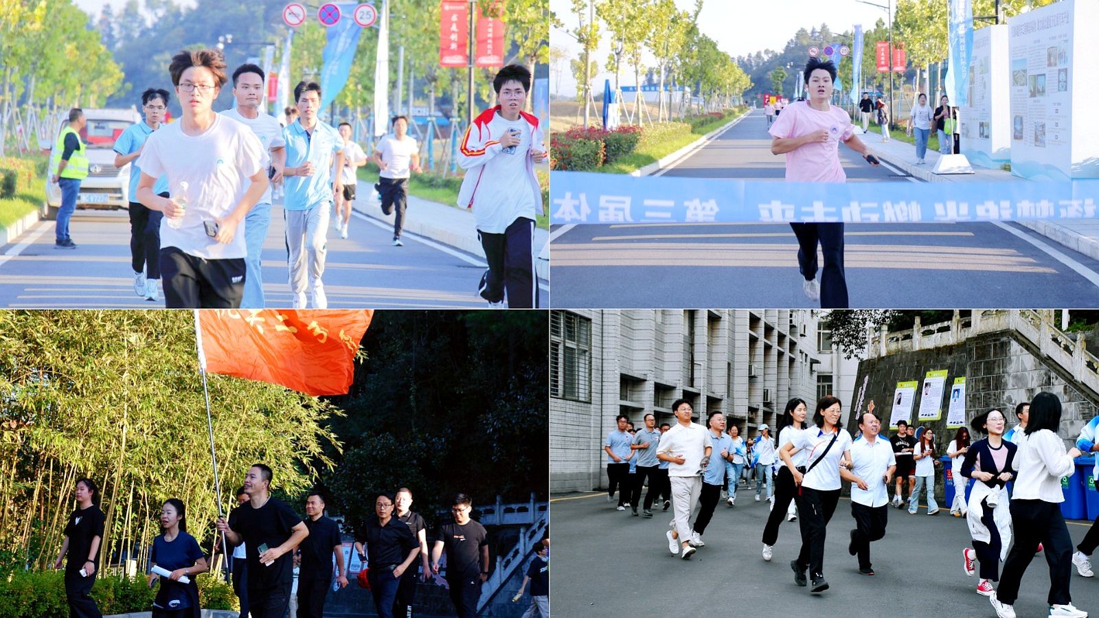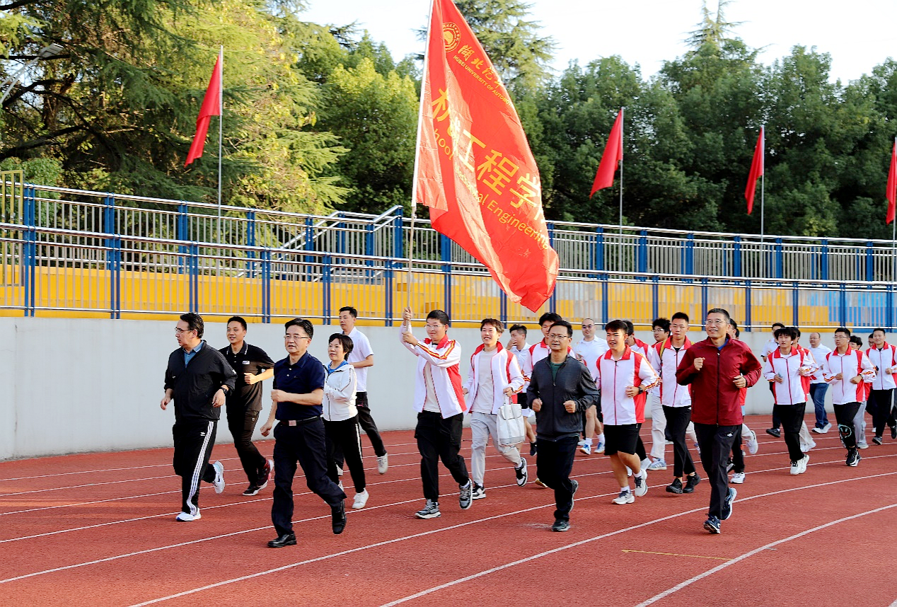铿锵有力的锣鼓声和活力四射的暖场舞将现场氛围推向高潮。在充分热身后,校领导带领师生们迎着秋日的微风,迈着轻盈的步伐,从南区田径场出发,向北校区终点跑步前行。