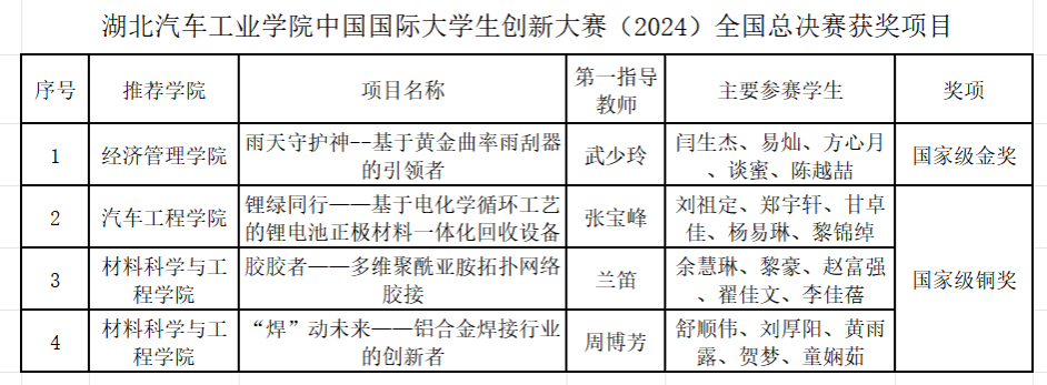 大赛经过激烈的专家评审及项目路演,英国上市公司365入围国赛的4项作品喜获金奖1项、铜奖3项,取得新的突破。其中,武少玲老师指导的“雨天守护神——基于黄金曲率雨刮器的引领者”项目表现优异,勇夺高教主赛道创业组金奖。
