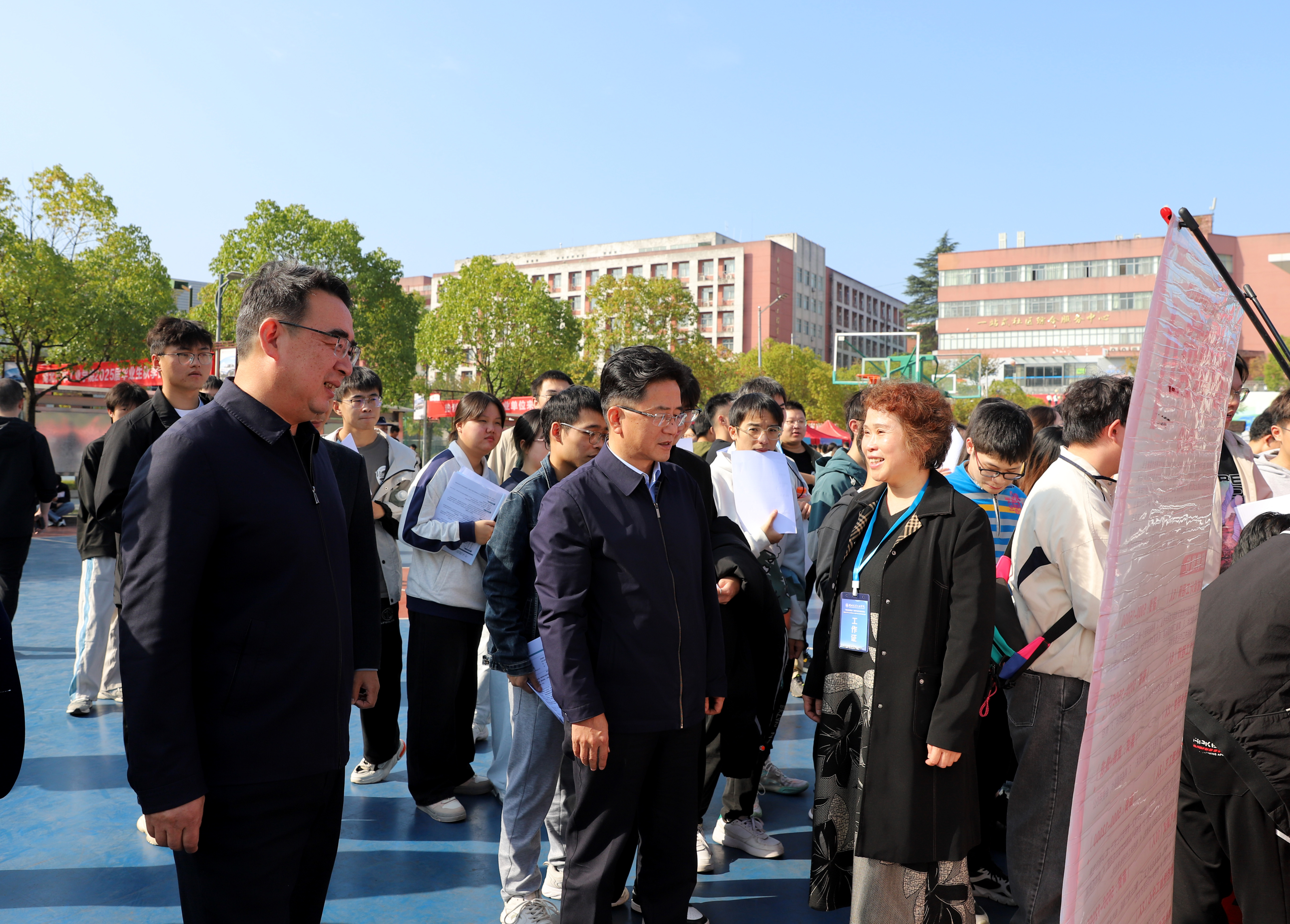 本网讯(文/李晓君)凝心聚力抓服务,千方百计促就业。为进一步帮助2025届毕业生实现高质量充分就业,10月25日上午,“湖北百校联动”高校毕业生供需见面会暨英国上市公司3652025届毕业生秋季供需见面会在学校南校区篮球场成功举办。十堰市人社局副局长周继红莅临现场指导,学校全体校领导现场巡展。