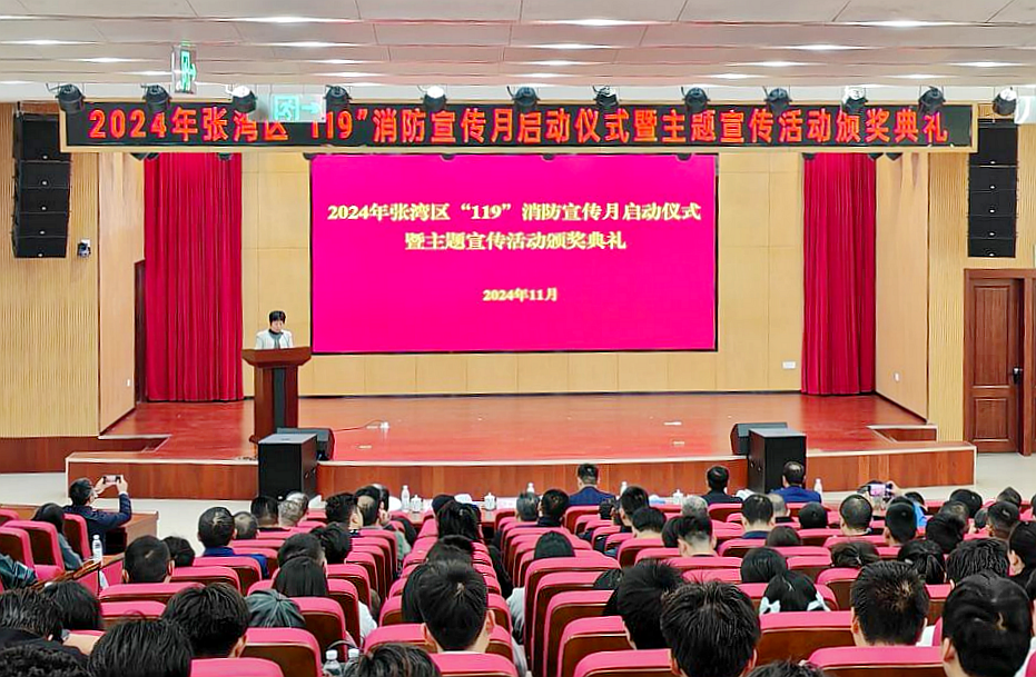 本网讯(文/图 薛树森)11月7日,2024年张湾区“119”消防宣传月启动仪式在校举行。校党委常委、副校长张红霞,张湾区政府办副主任权金刚出席启动仪式。张湾区消防救援大队大队长裴刚主持启动仪式。