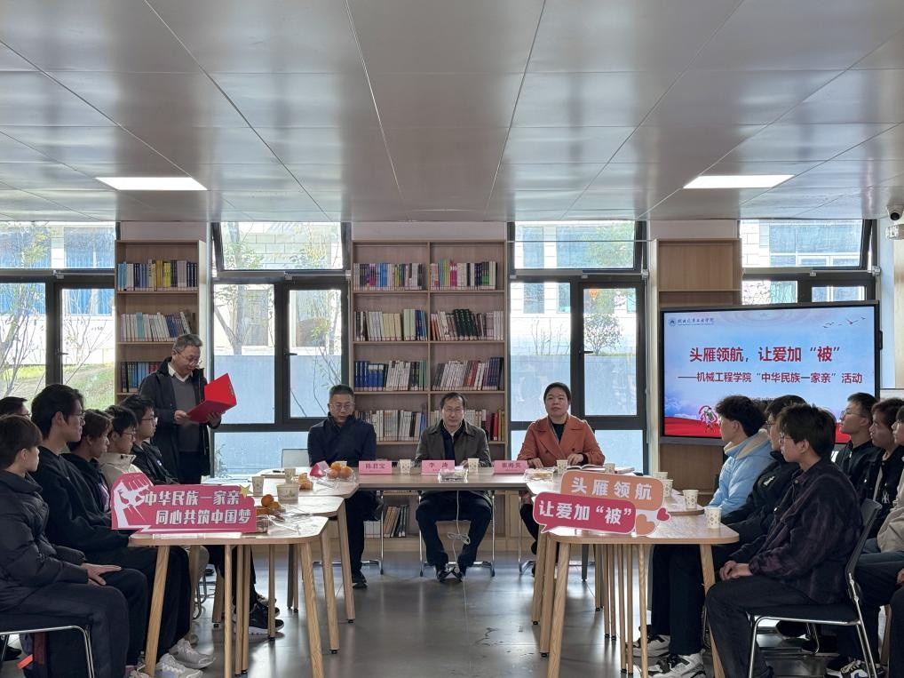 本网讯(文/崔海英、马晓涛、高梓洵)为加强民族团结教育,铸牢中华民族共同体意识,11月22日下午,机械工程学院在北校区一站式服务大厅开展“头雁领航,让爱加‘被’”主题活动。校党委副书记李涛、机械工程学院分党委书记崔海英、副书记马晓涛、副院长陈君宝以及30余名少数民族学生代表参加活动。
