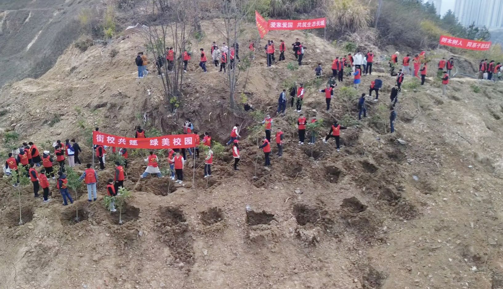 在北校区田径场举行启动仪式后,在场人员纷纷前往北校区连接路(双元驾校旁空地)和运动场旁的护坡两个植树点。在植树现场,大家扶正树苗、培土围堰、提水浇灌,现场一派热火朝天的劳动景象。铁锹一铲一铲落下,200棵枇杷树渐次竖起。这份绿色礼物,寄托了街校携手、共育未来的美好愿景。学校将继续以实际行动实践绿色理念,助推校园生态文明建设。(审稿 勾建新)