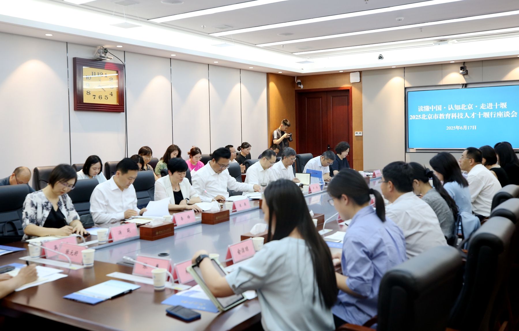 本网讯(文 徐跃廷/图 李一凡)6月17日下午,十堰市总工会、市委组织部、教育局联合北京市教育工会,组织清华大学、北京大学、中国人民大学、北京理工大学等高校专家学者及十堰教育界代表45人赴学校开展座谈交流。北京市教育工会副主席黄秀芳,十堰市委常委、统战部部长、市总工会主席张涛,校党委副书记李涛、工会主席陈海峰出席,市总工会党组书记凌燕主持会议。