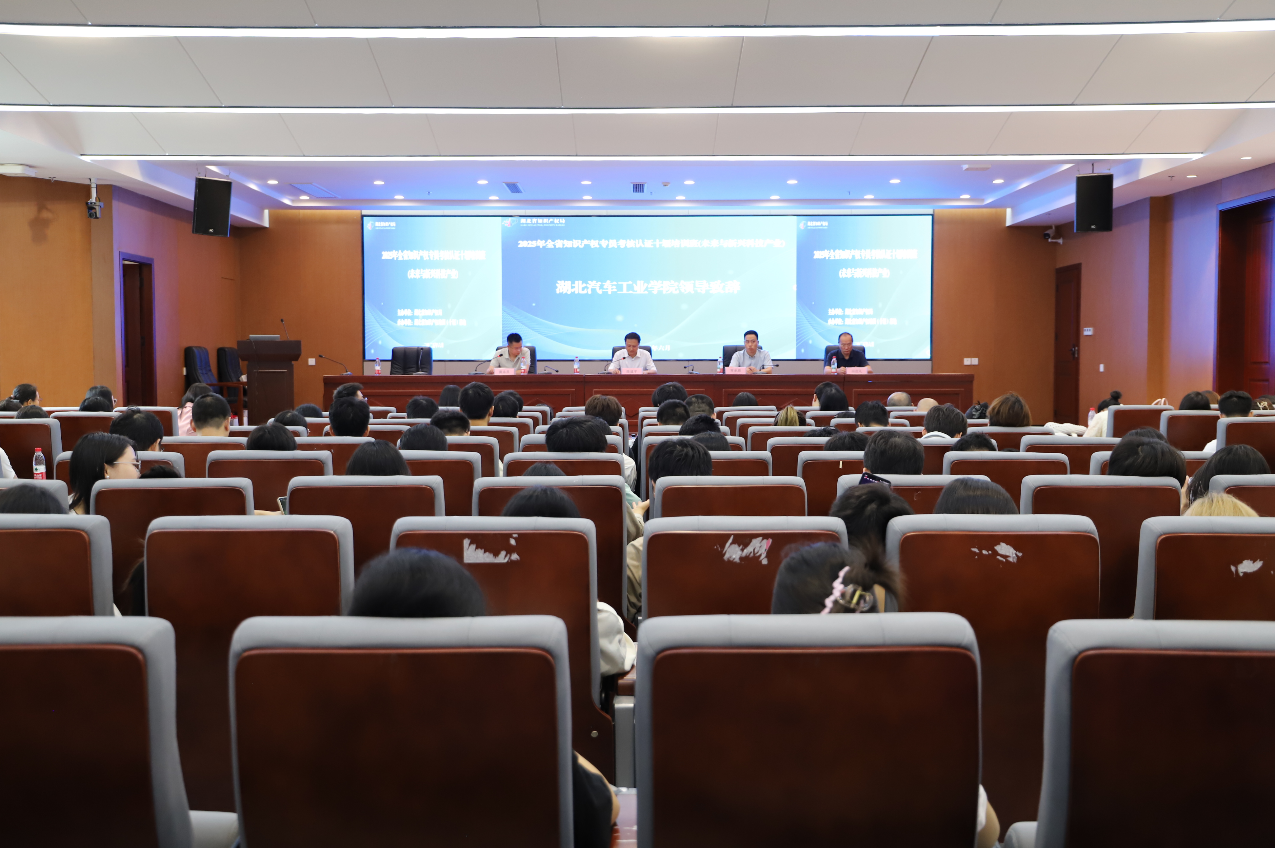 本网讯(文/肖玉杰)6月18日至20日,2025年全省“未来与新兴科技产业”知识产权专员考核认证培训班在校举行。来自武汉、十堰等7地的135家新兴科技链企业代表参训,124人通过理论与技能考核获“湖北省知识产权专员证书”。校党委副书记、纪委书记、监察专员陈建平,省知识产权局人事处副处长常承恩等出席结业活动。
