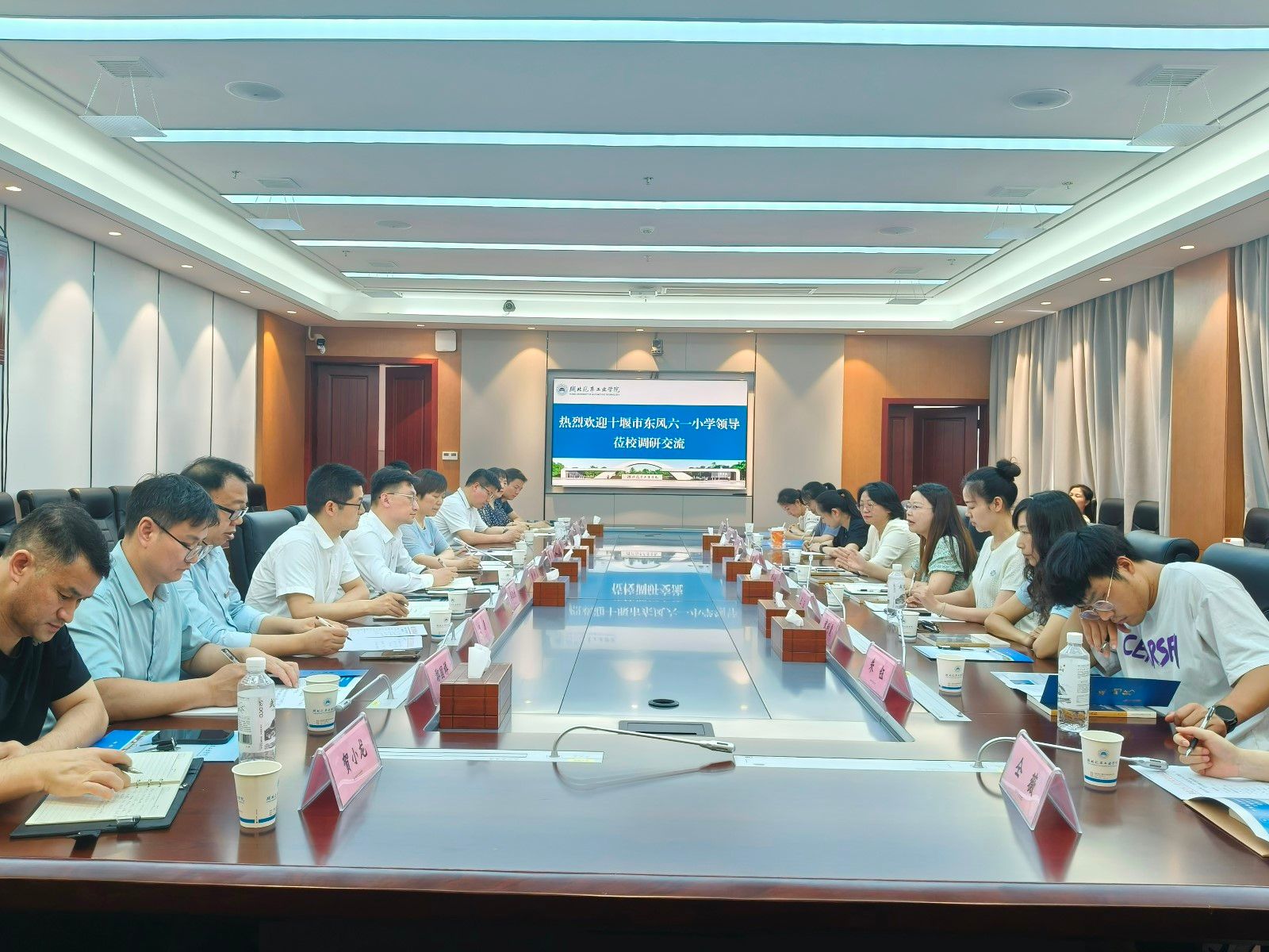 本网讯(文/唐小燕)7月3日上午,十堰市东风六一小学党总支书记胡波一行6人来校,就科创、科普合作展开交流。副校长张红霞,党委常委、党政办公室主任王文山热情接待。