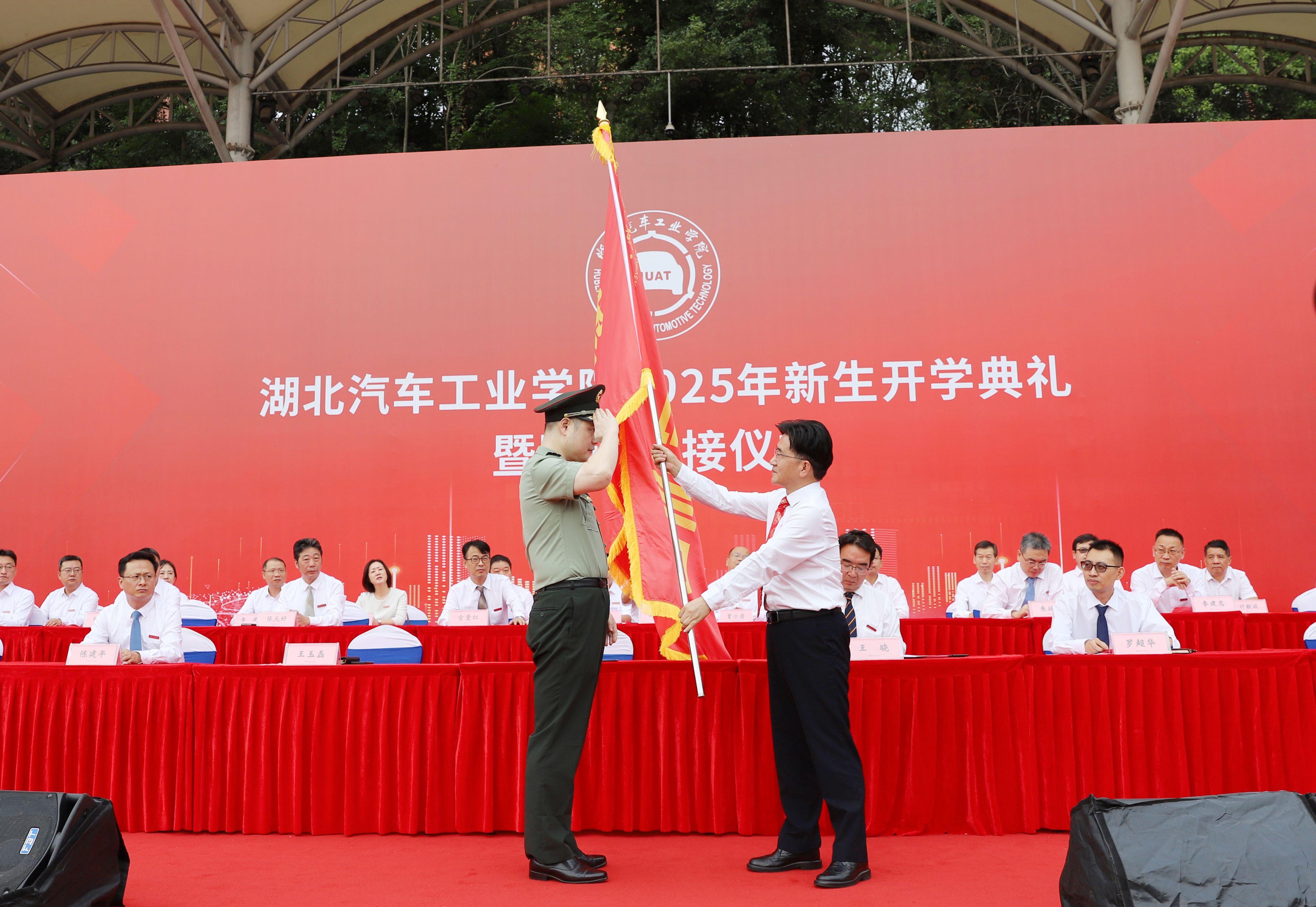 在《歌唱祖国》的合唱声中,2025年新生开学典礼暨军训交接仪式落下帷幕。相关职能部门负责人,各二级学院院长,党委书记、副书记,学工办主任,分团委书记,辅导员,新生班主任,导生,学工部、团委工作人员以及2025年全体新生共同参加典礼。(审稿 杜昕俊)