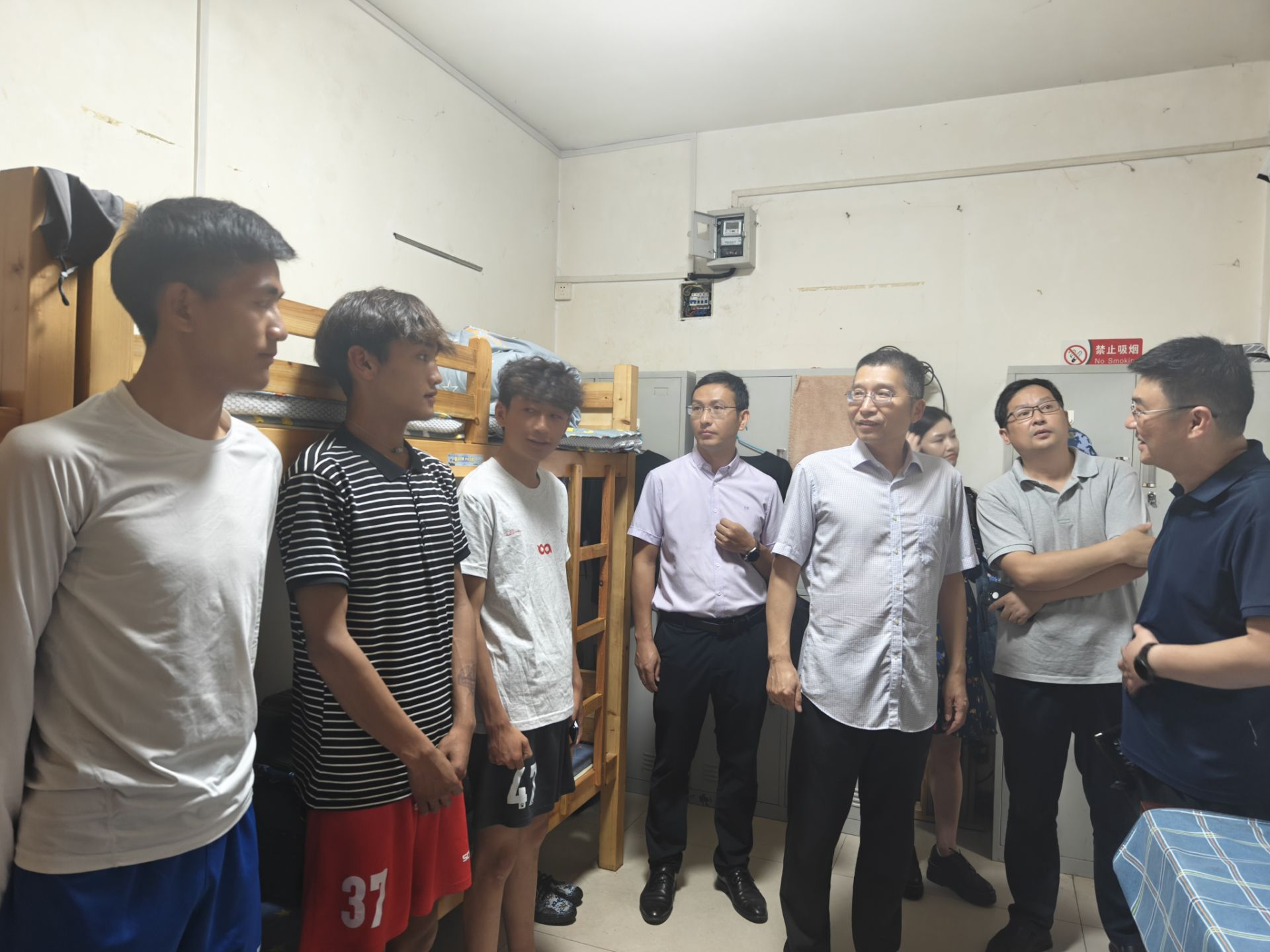 检查组逐层查看宿舍门卫台账、消防设施、用电安全及卫生环境,陈海峰与学生亲切交流,叮嘱注重寝室安全、遵守管理规定。办公会上,继续教育学院汇报了自考全日制助学班及宿舍安全管理情况,各部门提出意见建议。