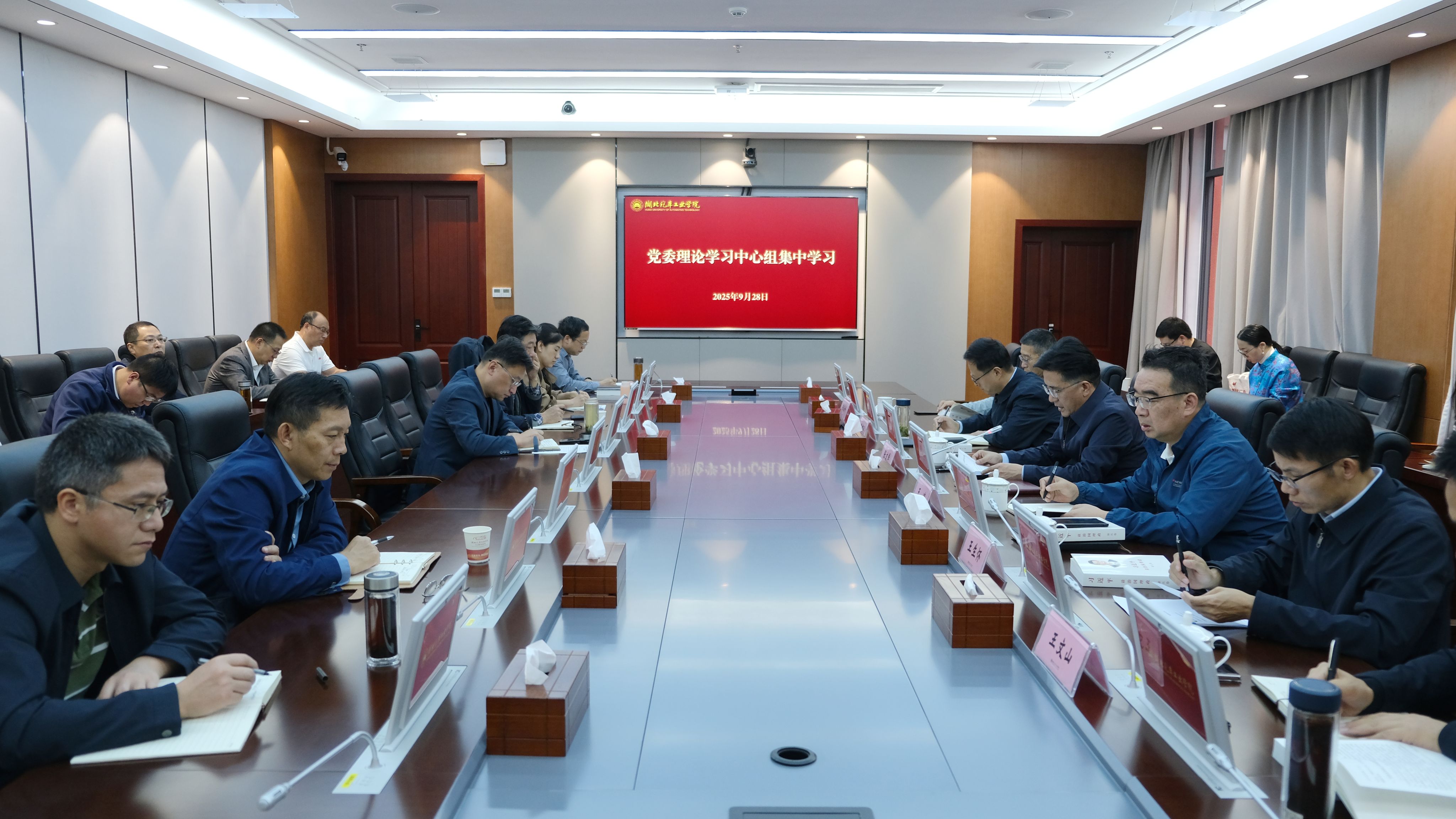 本网讯(文 刘俊/图 邓玉洁)9月28日,校党委理论学习中心组举行2025年第十二次集体学习,专题学习研讨《习近平谈治国理政》第五卷。党委书记张文学主持会议并讲话,全体在校校领导、党委委员、纪委委员、党群部门负责人及二级党组织书记参加学习。