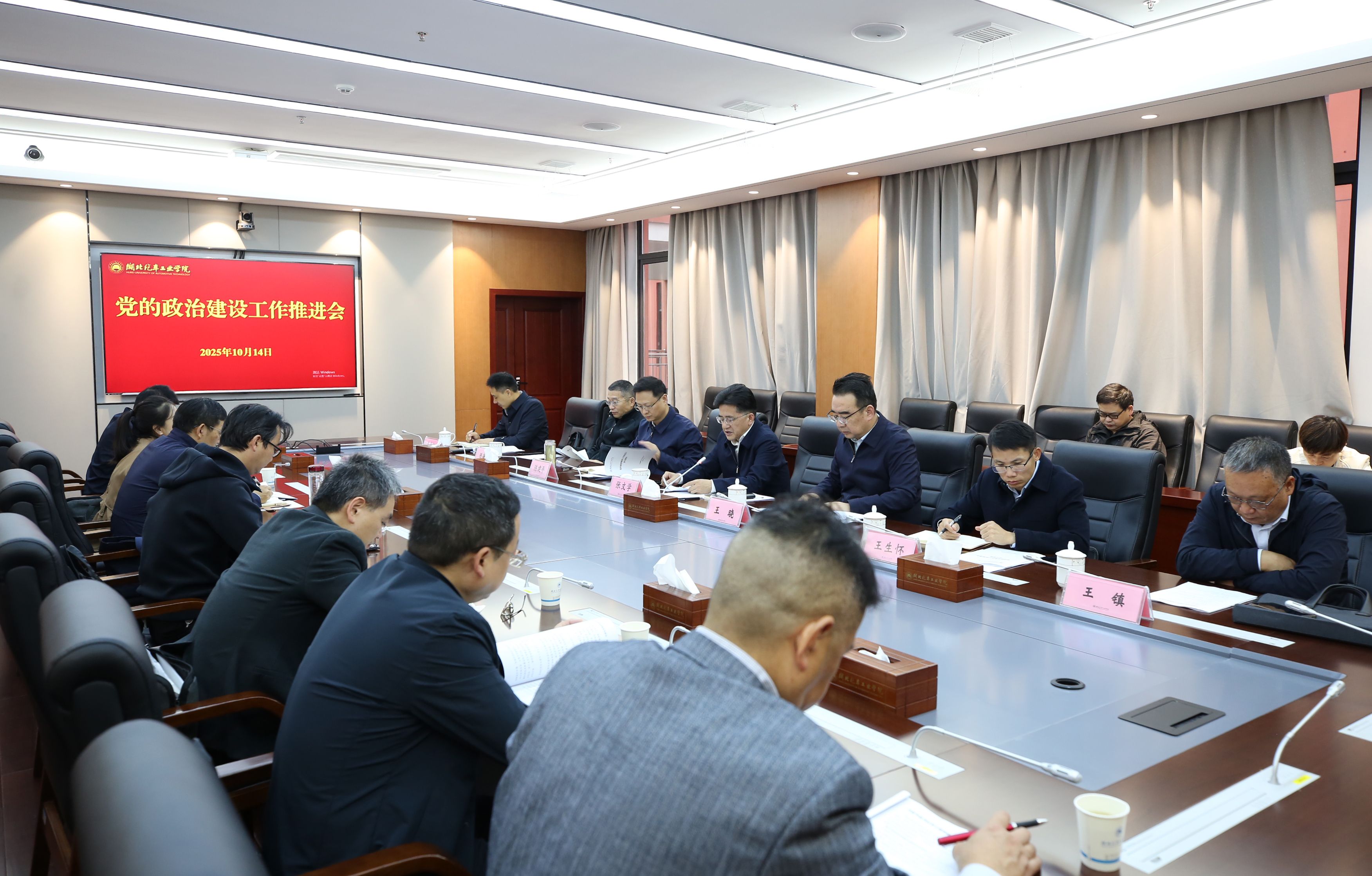 本网讯(文 卢旭/图 李一凡)10月14日,学校在产教大楼三楼多功能会议室召开党的政治建设工作推进会,全体在家校领导参加会议,会议由党委书记张文学主持。