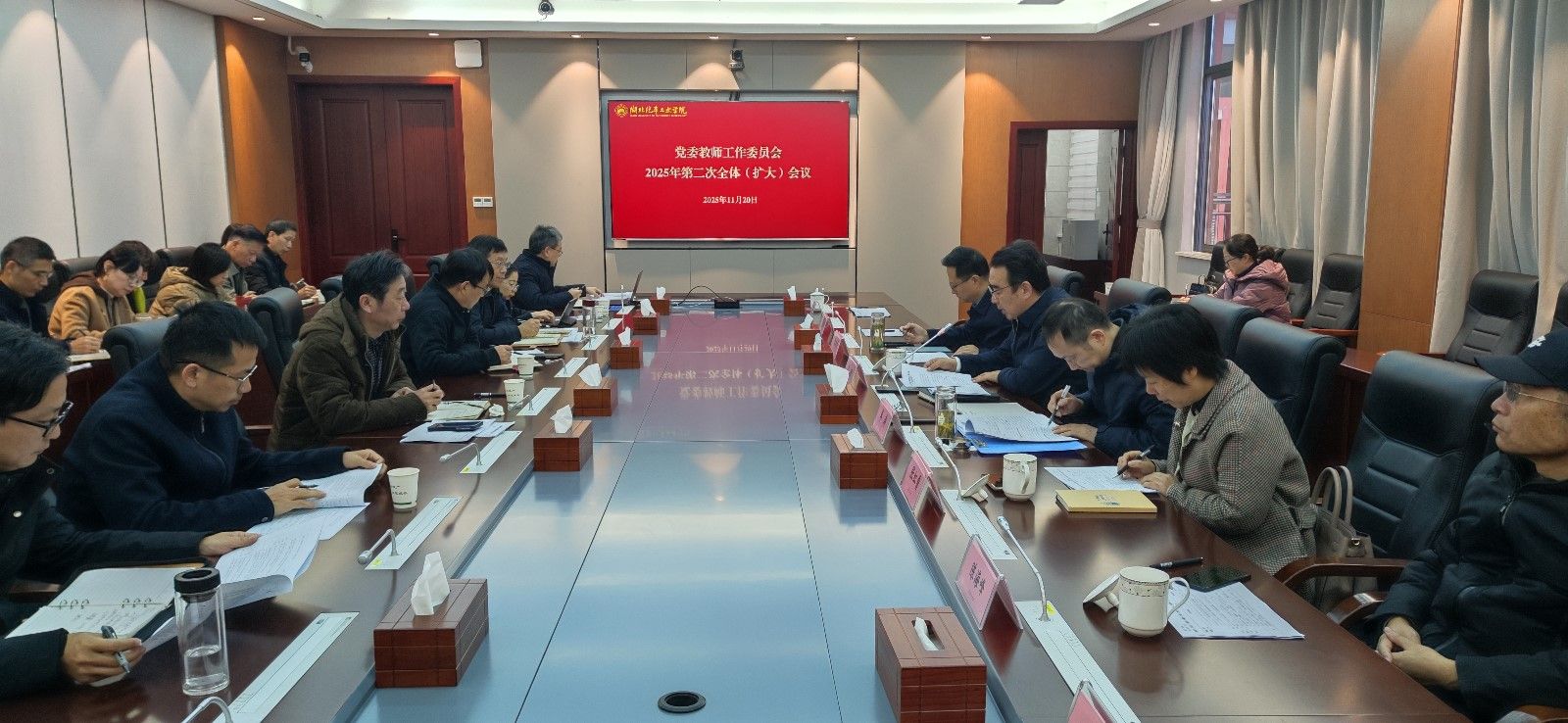 本网讯(文/章俊莉)11月20日上午,学校在产教大楼三楼多功能会议室召开党委教师工作委员会第二次全体(扩大)会议。全体在校校领导、党群部门负责人、二级学院主要负责人参会,会议由党委副书记李涛主持。会议聚焦师德师风长效机制建设,深入学习《关于加强新时代高校青年教师队伍建设的指导意见》《省委教育工作领导小组秘书组关于落实新时代师德师风建设长效机制重点任务的通知》等有关文件精神,审议学校贯彻落实《关于健全新时代师德师风建设长效机制的意见》重点任务清单。