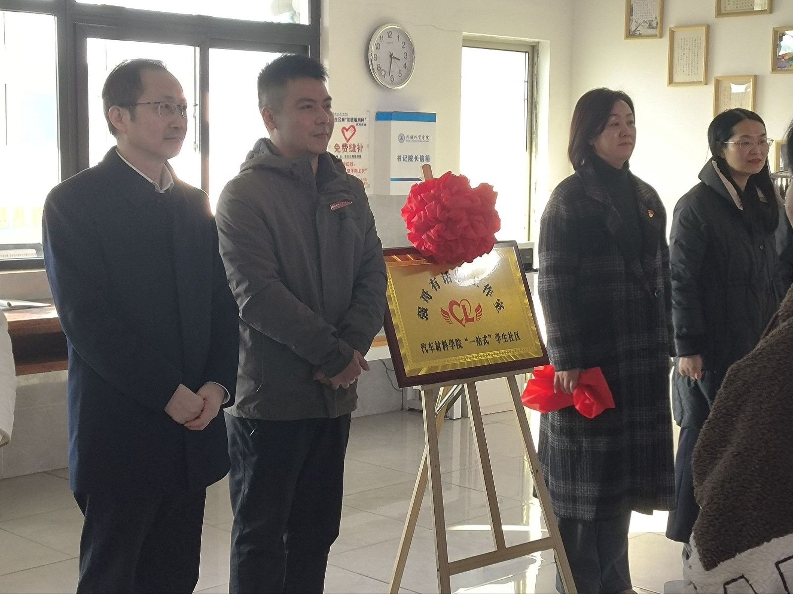 汽车材料学院党委书记杨陵郧、学工部副部长杜昕俊、党政办副主任金月陪同走访。