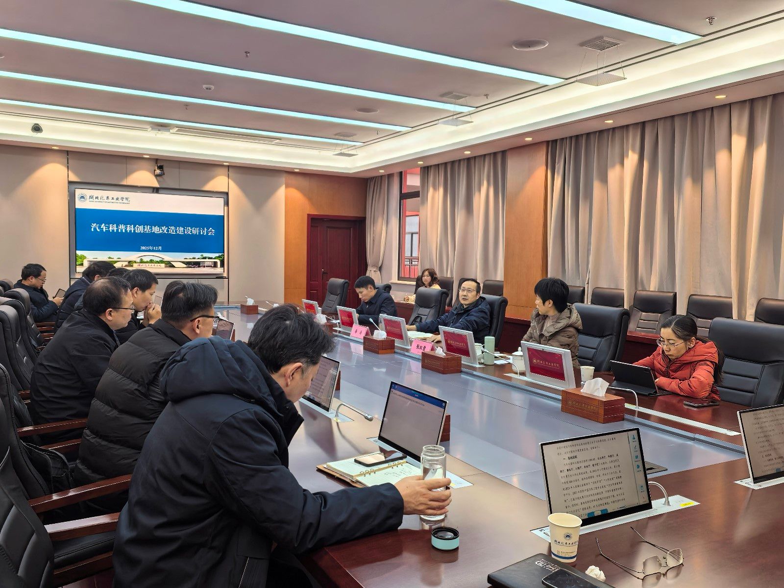 本网讯(文/唐小燕)12月17日上午,党委副书记、校长李涛在产教大楼三楼多功能会议室主持召开汽车科普科创基地改造建设研讨会。党委常委、副校长张红霞、王生怀出席会议,相关职能部门和二级学院负责人参加了会议。