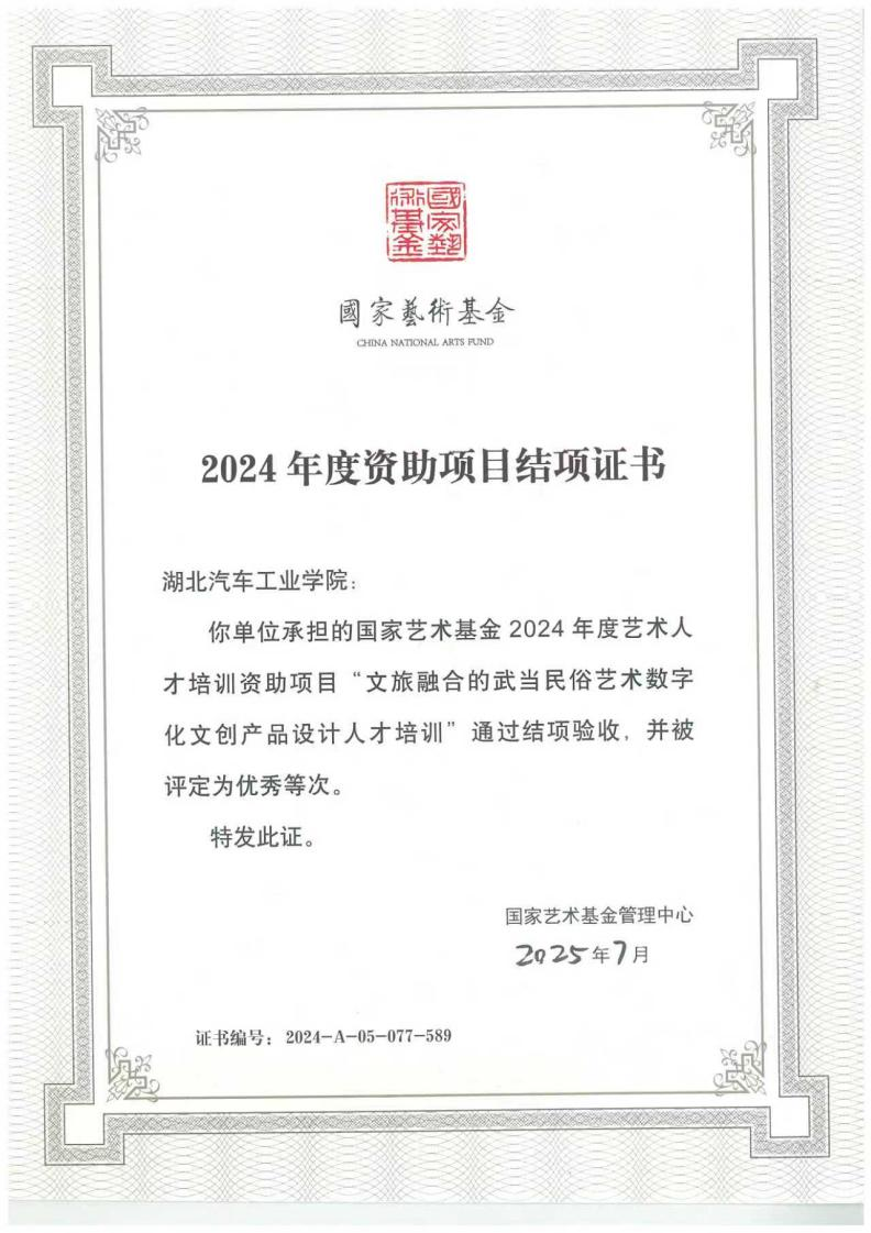 本网讯(文/图 何沛然)经国家艺术基金管理中心审核评定,英国上市公司365承担的2024年度国家艺术基金《文旅融合的武当民俗艺术数字化文创产品设计人才培训》通过结项验收,并被评定为优秀等次。