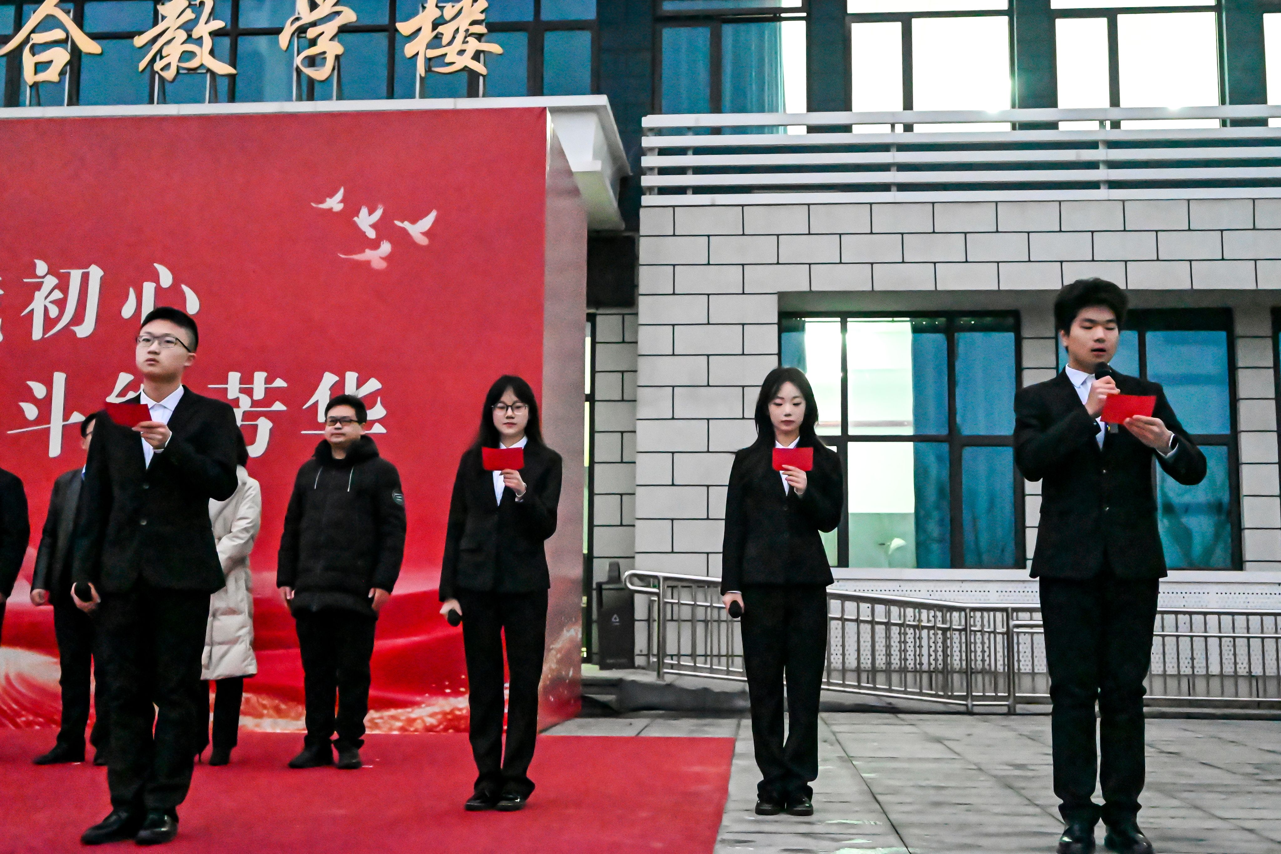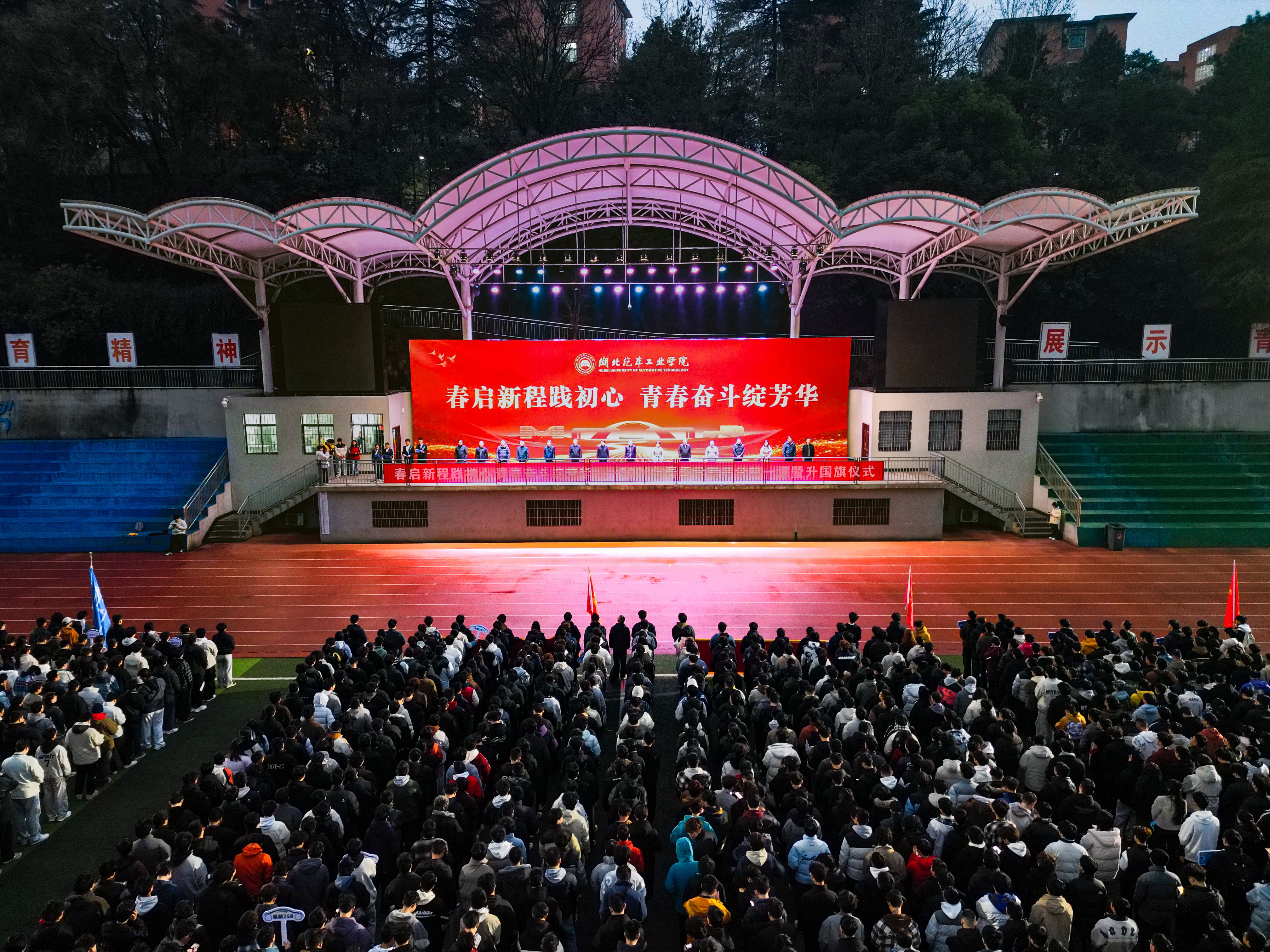 上午6时50分,国旗护卫队踏着铿锵正步护送旗帜,鲜红的五星红旗在国歌声中徐徐升起,全体师生肃立高唱国歌、行注目礼。学生代表深情朗诵《以青春之名,赴时代之约》的声音回荡校园,机器人学院电气233班沈美辰和汽车智能制造学院机制244班郑博文分别作国旗下演讲,结合AI时代分享青年奋进故事,号召全体同学传承汽院精神,锐意进取求突破,志存高远践使命。
