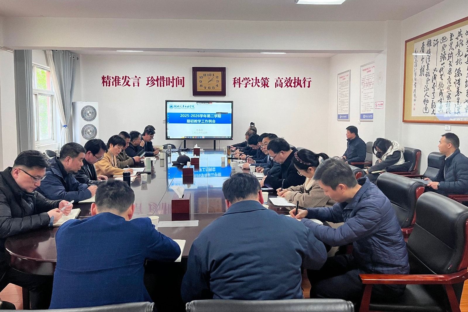 本网讯(文/图 潘佳欣)3月11日下午,学校在行政楼三楼会议室组织召开2025-2026学年第二学期期初教学工作例会。党委常委、副校长张红霞参加会议,会议由教务处处长宫爱红主持。