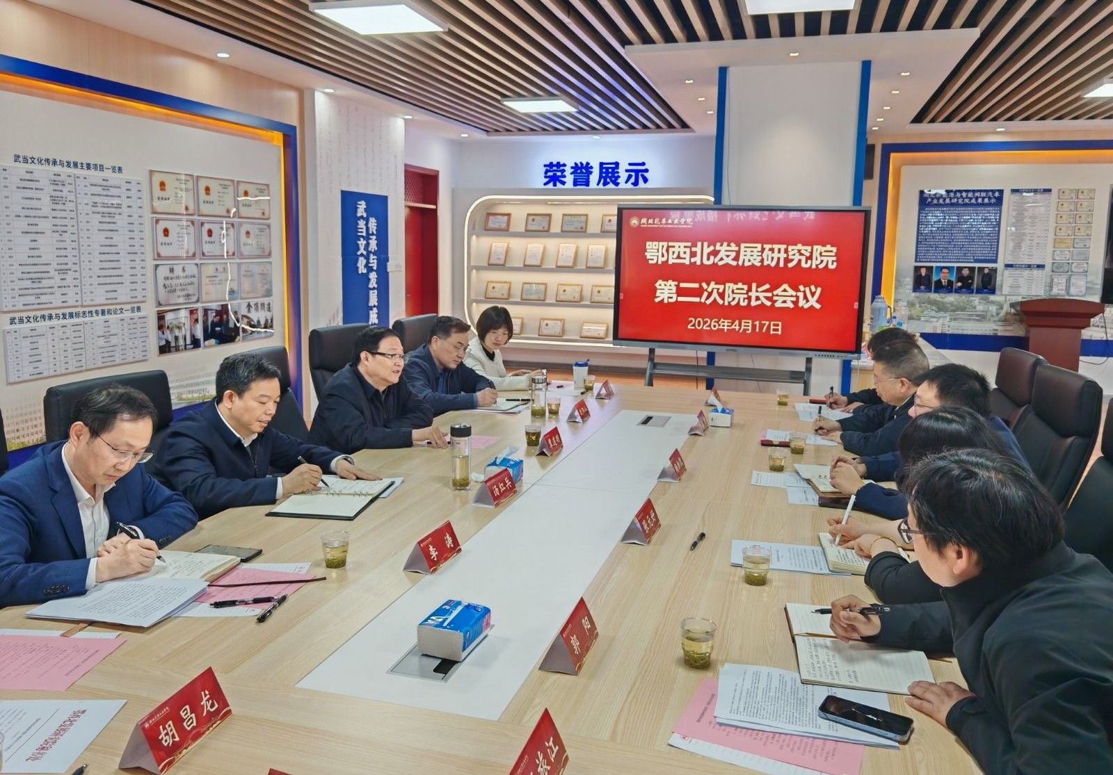 本网讯(文/图 肖俊涛)4月17日上午,鄂西北发展研究院在学校产教大楼四楼SX-403室召开第二次院长会议。会议由党委副书记、校长李涛主持。十堰市委常委、宣传部长汤红兵、鄂西北研究院院长办公会议成员、鄂西北研究院秘书处成员、鄂西北研究院专家委员会代表出席会议。