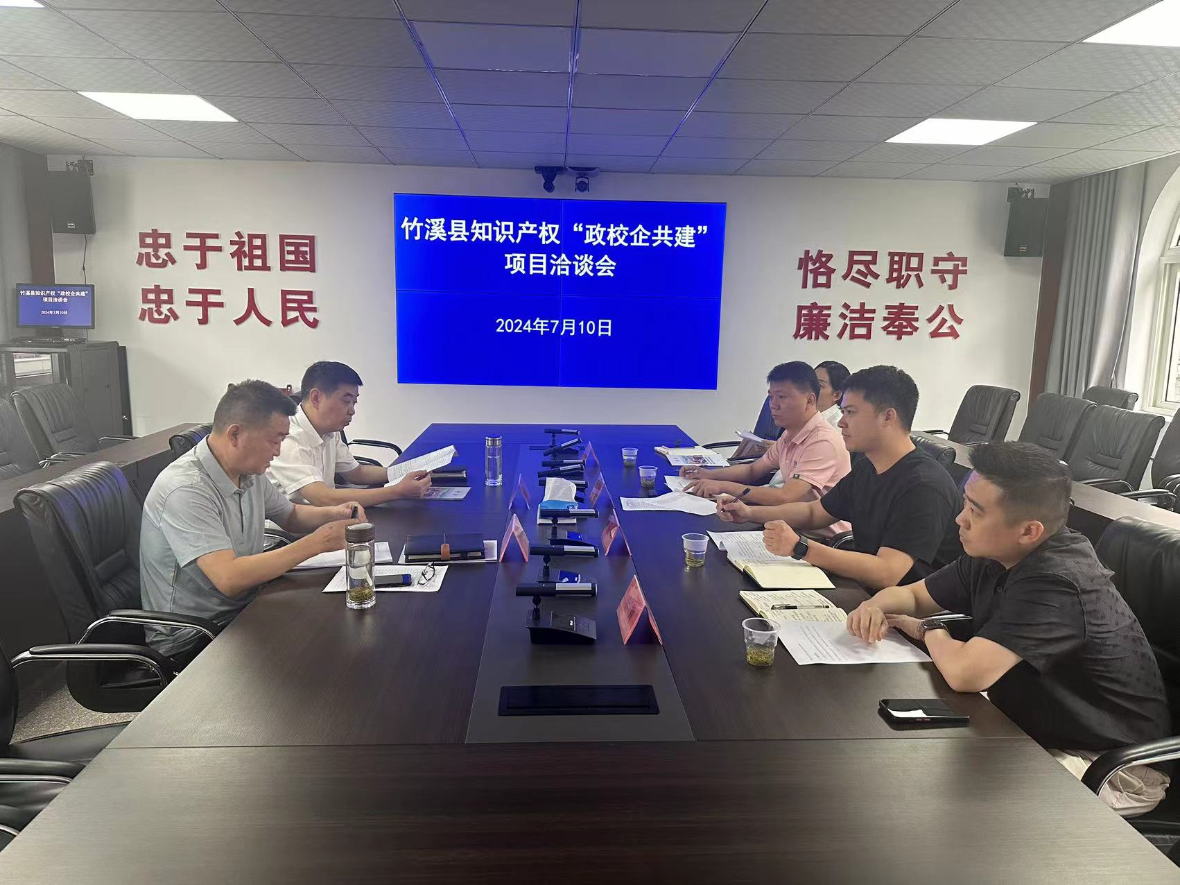 本网讯(文/图 肖玉杰)7月10日,受竹溪县市场监督管理局(知识产权局)邀请,学校知识产权学院赴竹溪县就高效推进学校与竹溪县知识产权政校企高价值发明专利培育进行洽谈交流。马克思主义学院(知识产权学院)院长助理、湖北省汽车知识产权研究院常务副院长董文波教授、湖北省知识产权培训(十堰)基地常务副主任肖玉杰副教授与竹溪县市场监督管理局(知识产权局)局长明炜、副局长谌德军进行了深入的沟通与探讨,并签订高价值发明专利培育与挖掘项目委托研究项目。