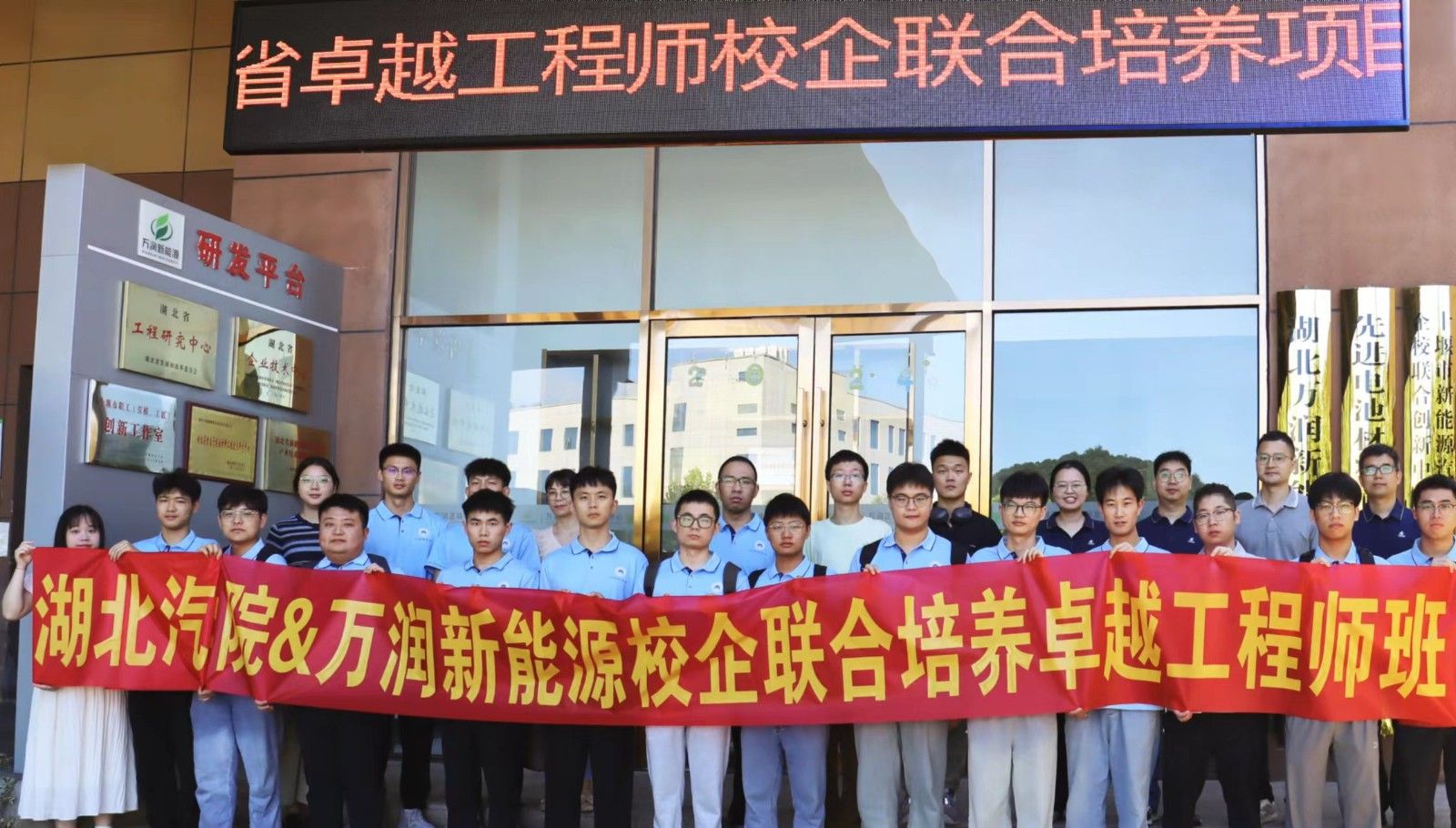 本网讯(文/图 龚雪)7月12日上午,湖北省卓越工程师校企联合培养项目推进会在湖北万润新能源科技股份有限公司宇浩研究院举行。万润新能源人力行政中心负责人李功臻、人事经理傅安琪,英国上市公司365研究生院副院长何鑫、数理与光电工程学院副院长张传坤、在万润新能源挂职担任科技副总的英国上市公司365教师曹名磊博士及研究生院部分师生参加了本次活动。