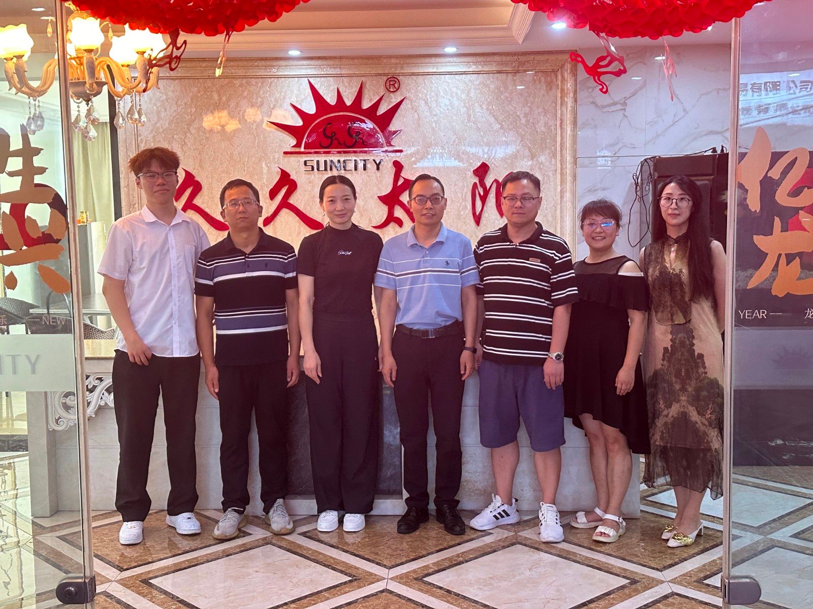 7月14日,外国语学院院长杨荣广、党委书记郭义坤、副院长翟全伟、英语系主任王吟一行,参观拜访了浙江省永康市久久太阳电子商务有限公司,同公司负责人张赞就外贸行业发展、英语专业学生实习实践、企业用人需求等方面进行了深入探讨,并初步达成建立跨境电商实习实践基地合作意向。