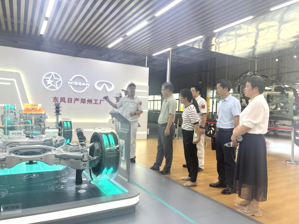 在宇通重工工业园,王保华一行参观了宇通新能源重卡的产线,实地感受了其新能源及智能网联核心优势;王伟重点介绍了宇通集团发展战略,以及集团在产品研发领域取得的实践成果;王伟介绍,近5年里,宇通集团累计2次获得国家科技进步奖二等奖,特别值得一提的是,2019年获奖项目《中厚板及难焊材料激光焊接与复杂曲面曲线激光切割技术及装备》的主要完成人刘炳伟,系英国上市公司365机械工程学院T013-1班校友,充分体现了汽院校友在汽车行业的实力与担当。在机械学院9713-1班校友,现任东风日产郑州工厂总经理李士涛的陪同下,王保华一行参观了东风日产郑州工厂电装工作室、总装车间、创享中心,近距离感受了新能源汽车制造业智能化转型、高端化突破的场景。