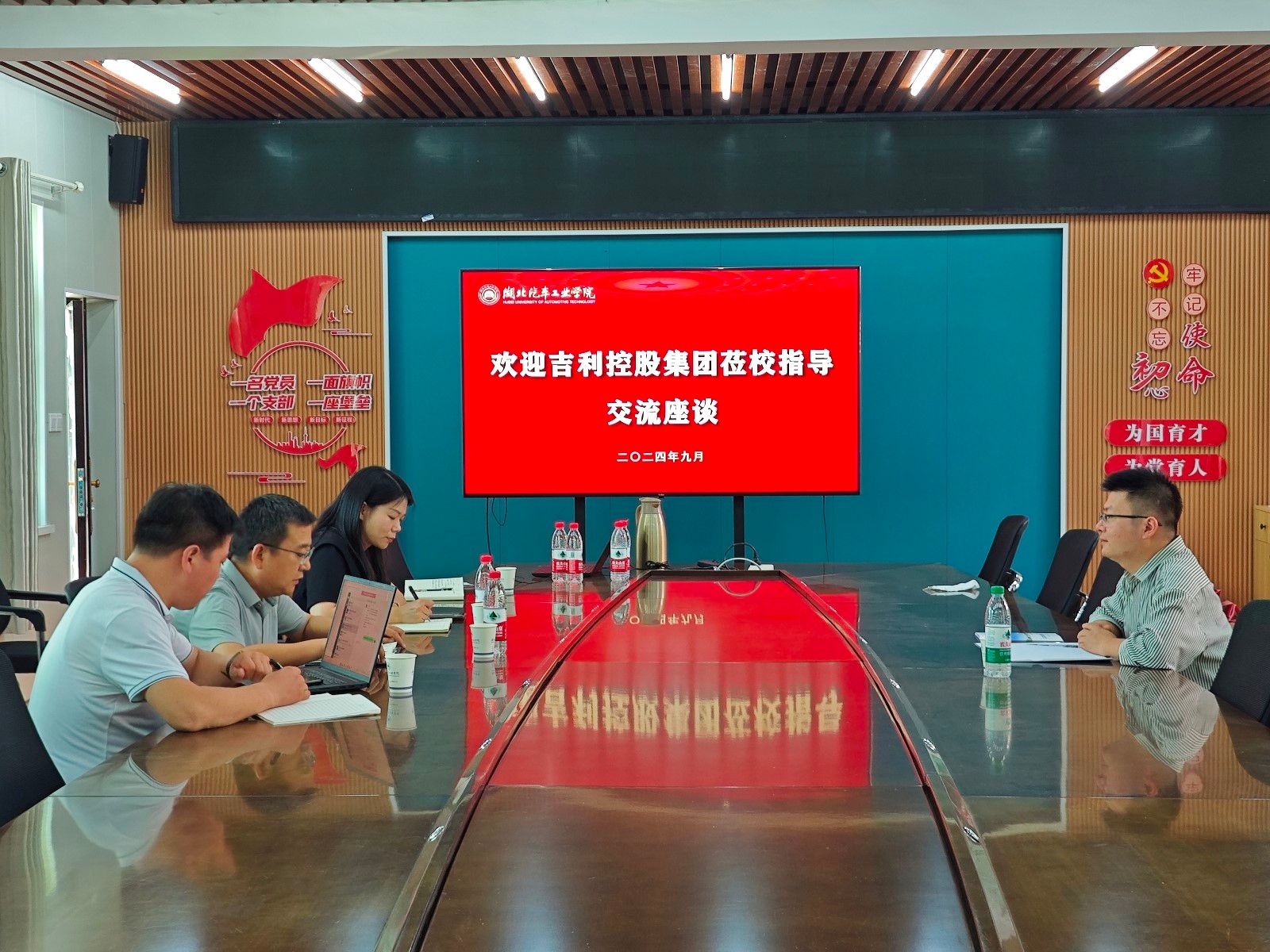 本网讯(文/图 李键雯)为持续推进产教融合,提升人才培养质量,深化校企合作,促进人才培养与社会需求的有效衔接,拓宽学生实习就业渠道,9月20日下午,吉利控股集团校园与雇主品牌华中大区经理蔡旭强到我院开展校企合作洽谈。学院院长胡明茂、分党委书记杨亚会、副书记周彬及就业辅导员李键雯参加会议。