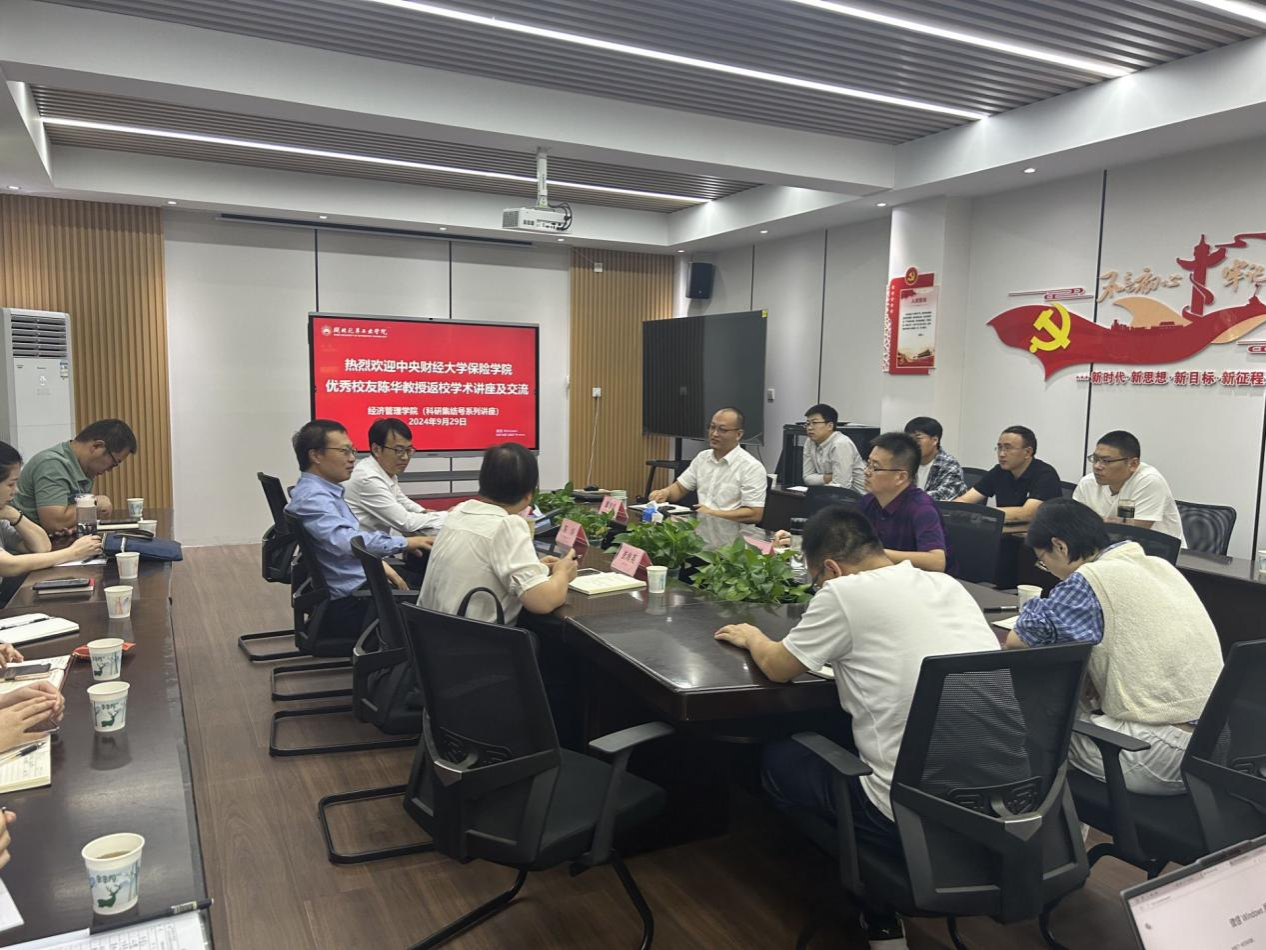会后,陈华还参加了经济管理学院“科研集结号”,与青年教师和科研骨干进行了学术交流,通过对国家基金项目申报的讲解与分析,对学院科研项目申报的选题以及申报书撰写工作提供了新思路,拓宽了新视野。交流中,陈华追忆大学美好时光,感恩母校培养,承诺利用自身学识和平台,与学校在经济与金融相关领域共建研究平台,共同开展学术研究,帮助培养青年教师,回馈母校培养之情。