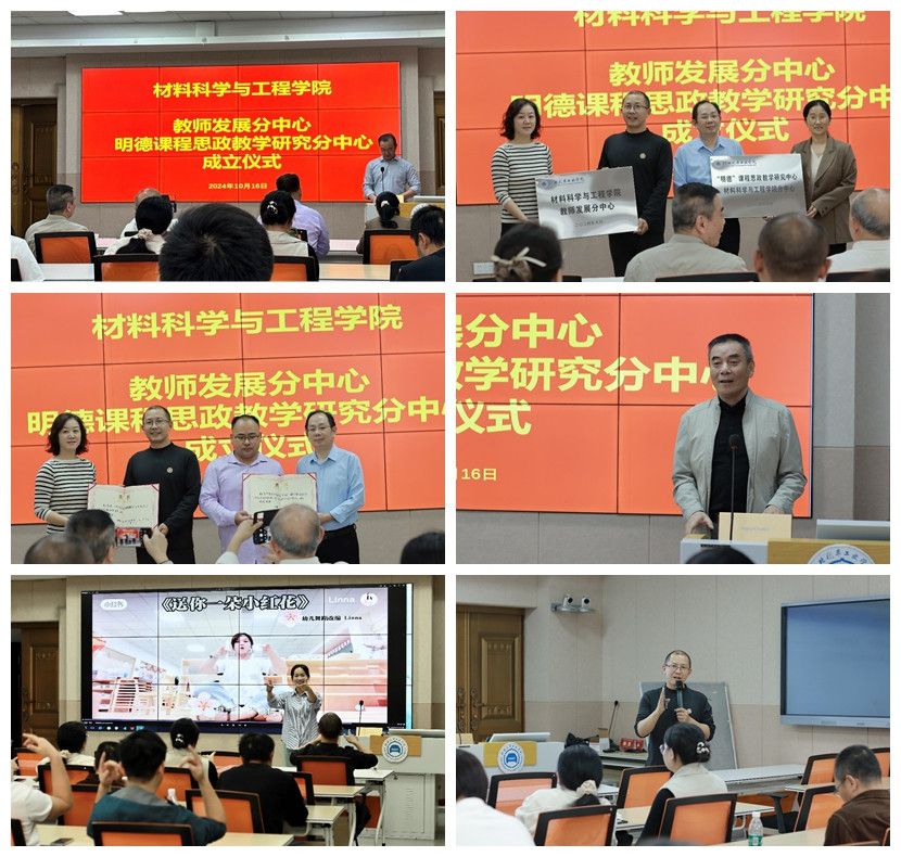 会上,刘峰宣读了成立材料科学与工程学院“明德”课程思政教学研究示范分中心及教师发展分中心的文件,郭一鸣教授代表学校教师发展中心为分中心授牌,成继平代表“明德”课程思政教学研究中心为分中心授牌,材料科学与工程学院分党委书记杨陵郧向分中心特聘顾问郭一鸣教授颁发聘书,科学与工程学院院长黄海铭为分中心特聘顾问严忠良老师颁发聘书。