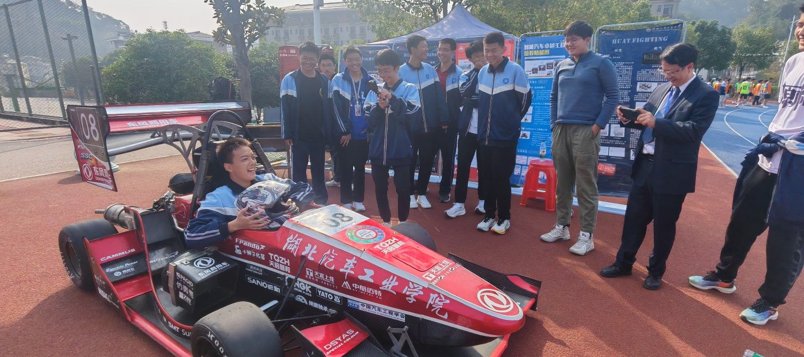本网讯(文/图 刘光辉、周彬)应长阳土家族自治县第一高级中学邀请,11月5日上午,汽车工程学院分党委副书记周彬率东风HUAT大学生方程式赛车队师生一行7人,参加该校第51届田径运动会暨第11届科技艺术节开幕式。