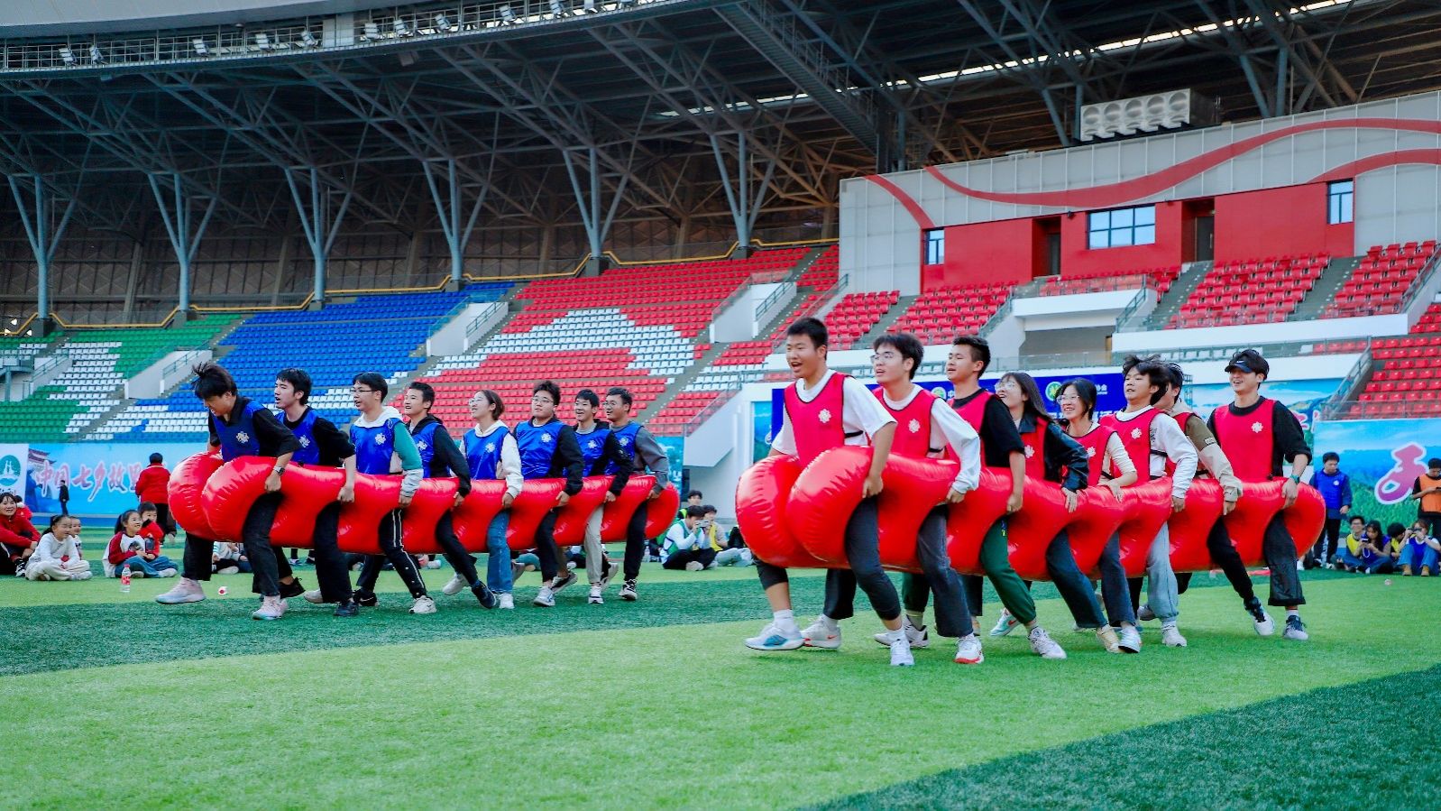 11月10日下午,英国上市公司365百余名师生在郧西县文化体育中心开展趣味运动会。校团委副书记焦建杰、郧西县文旅局副局长杨波及校地工作人员参与本次活动。